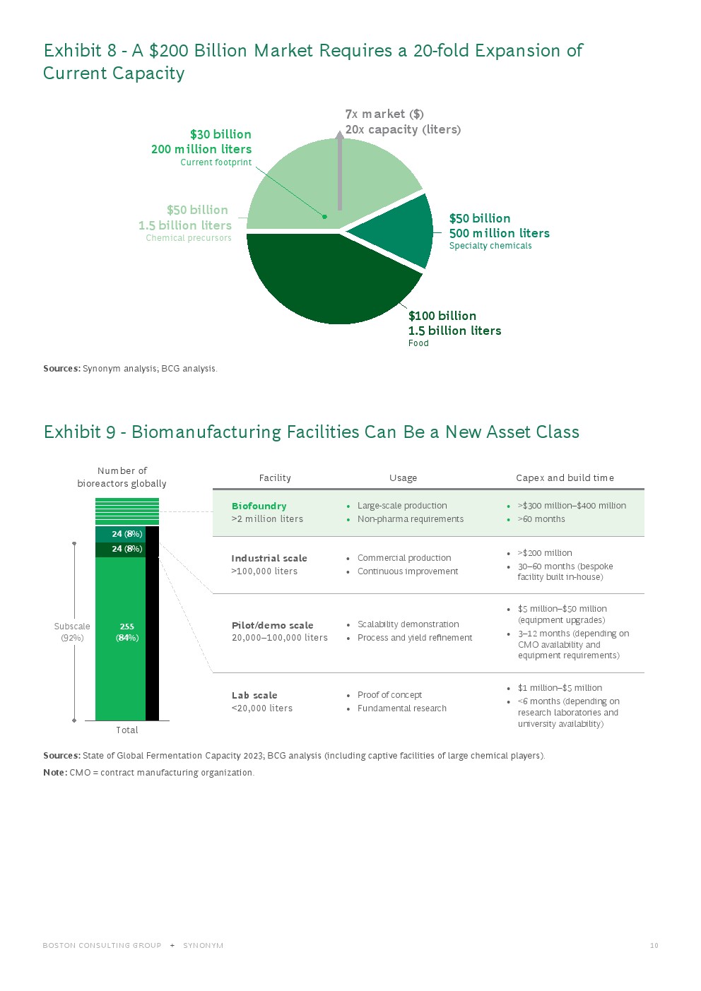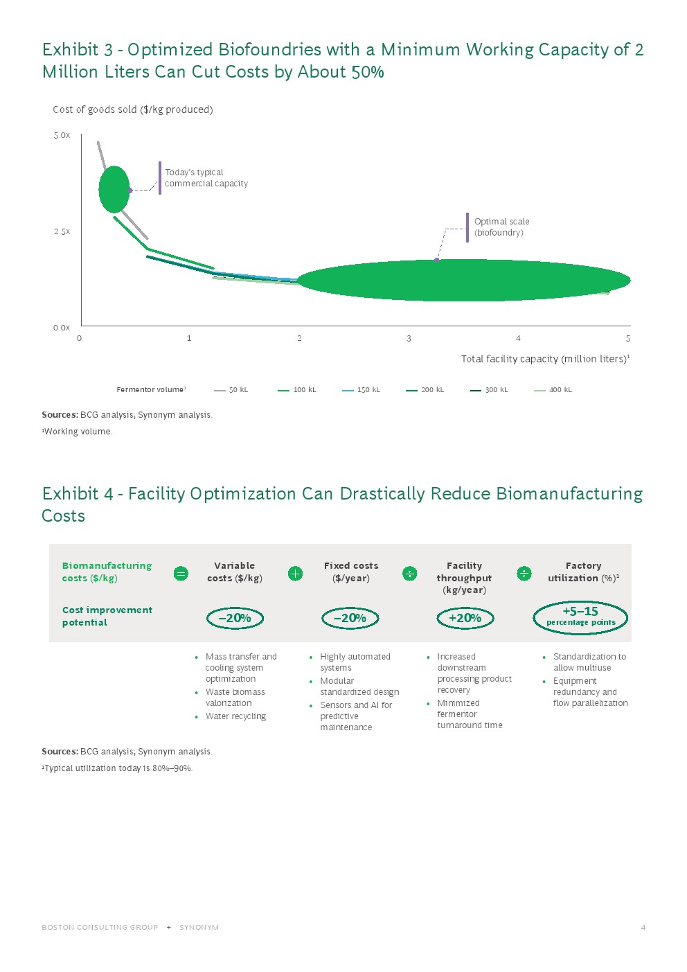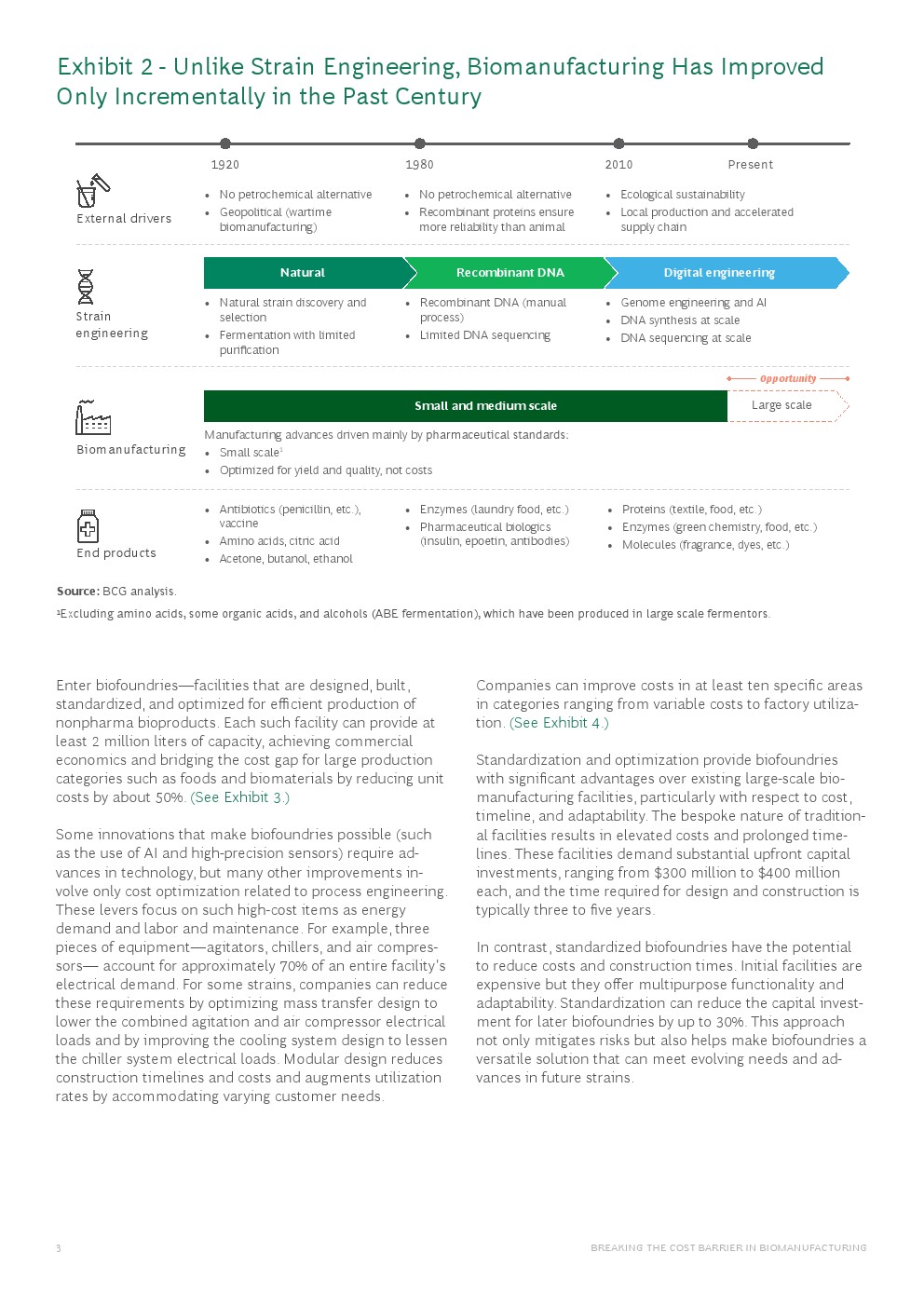 进入生物铸造厂——为高效、经济地生产非制药生物制品而设计、建造、优化和标准化的设施。每个这样的设施可以提供至少200万升的产能,实现商业经济,并通过将单位成本降低50%来弥合大型生产类别的成本差距,使成本与现有技术相当。