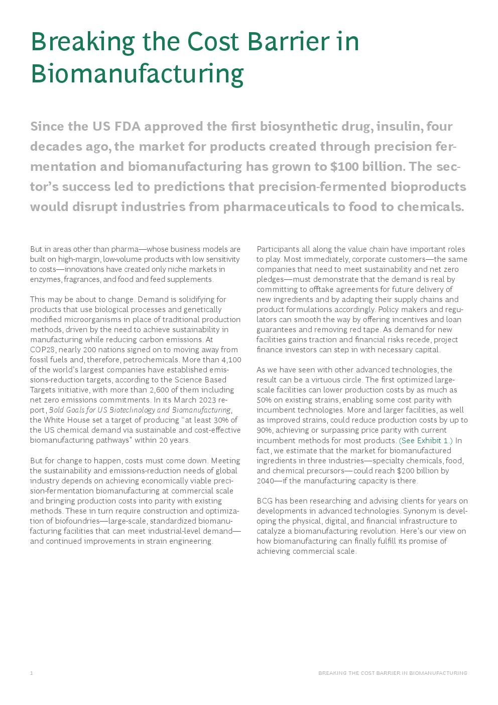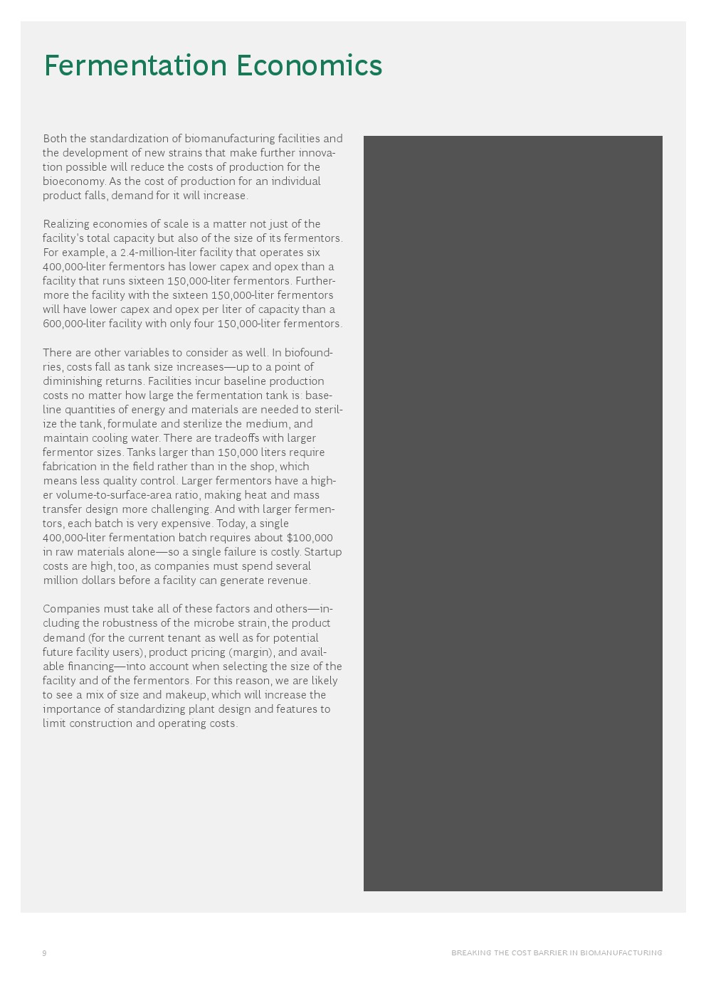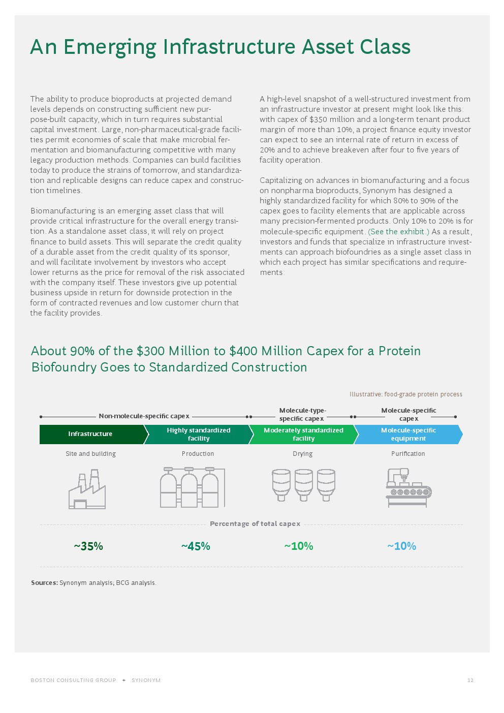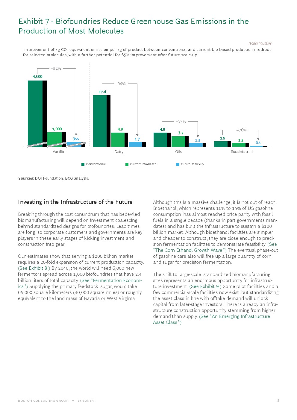 进入生物铸造厂——为高效、经济地生产非制药生物制品而设计、建造、优化和标准化的设施。每个这样的设施可以提供至少200万升的产能,实现商业经济,并通过将单位成本降低50%来弥合大型生产类别的成本差距,使成本与现有技术相当。
