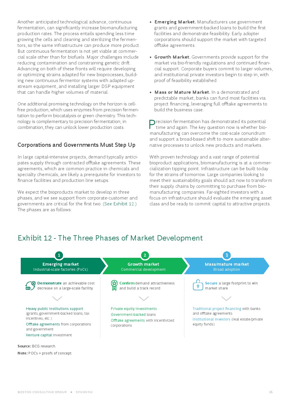 广泛的消费者教育和新的规章制度是关键,尤其是在食品行业。监管机构,如美国食品药品监督管理局和欧洲食品安全局必须制定新的验证和检查规则和程序,以促进开发新的、可持续的、安全的产品,而不增加上市时间。但应对气温上升和温室气体排放需要迫使制造业做出重大改变。除了通过使用生物原料而不是化石原料来减少排放外,生物铸造厂还提高了产量和能源效率。因此从二氧化碳排放的角度来看,大规模生物制造是生产大多数分子的更有吸引力的选择。