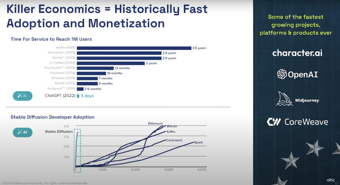 正是因为这个原因,我们作为风险投资者和私募市场的参与者非常兴奋。原因在于,我们见证过互联网历史上增长最快的公司(也包括互联网本身),这种增长不仅仅是通过收入或用户数量等指标来衡量的。正是经济性的错位(或者说经济性的波动和变化)催生了新的创业公司,而不仅仅是新技术。