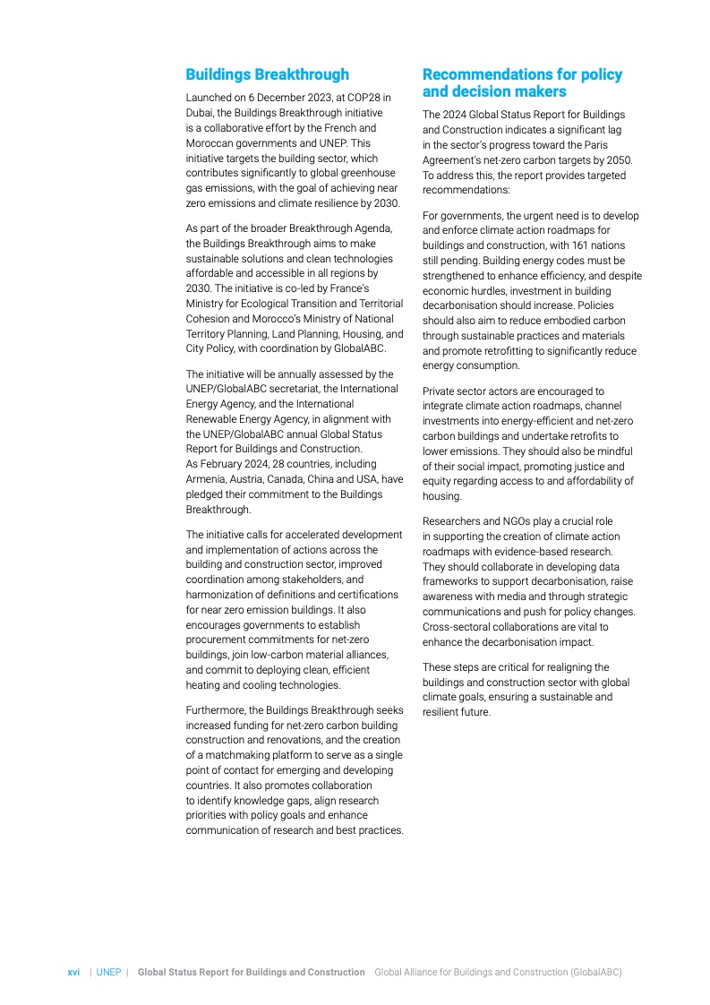 报告显示,建筑物和建造行业的能源需求与直接排放总共占到全球排放量的五分之一以上。为了让整个行业到2050年实现净零排放的目标,各国需制定具有雄心的气候行动路线图,并将其纳入到最新的国家气候行动计划当中。
