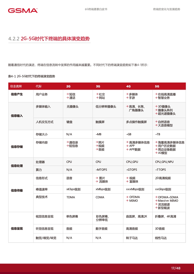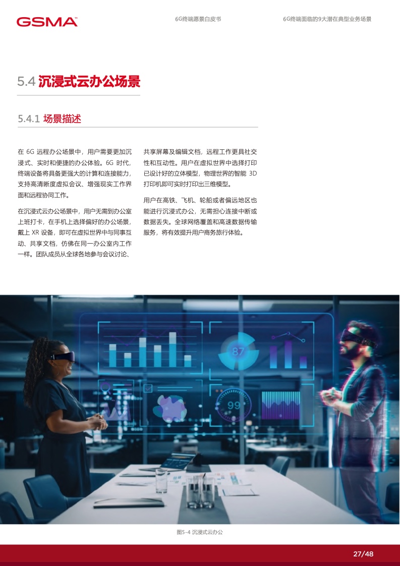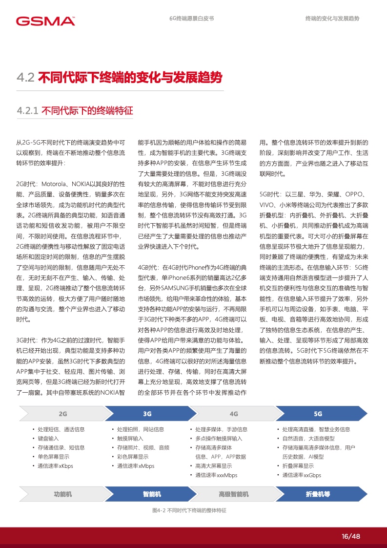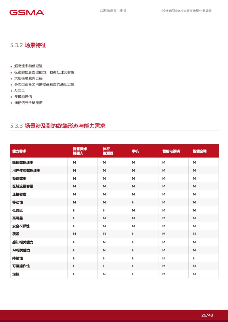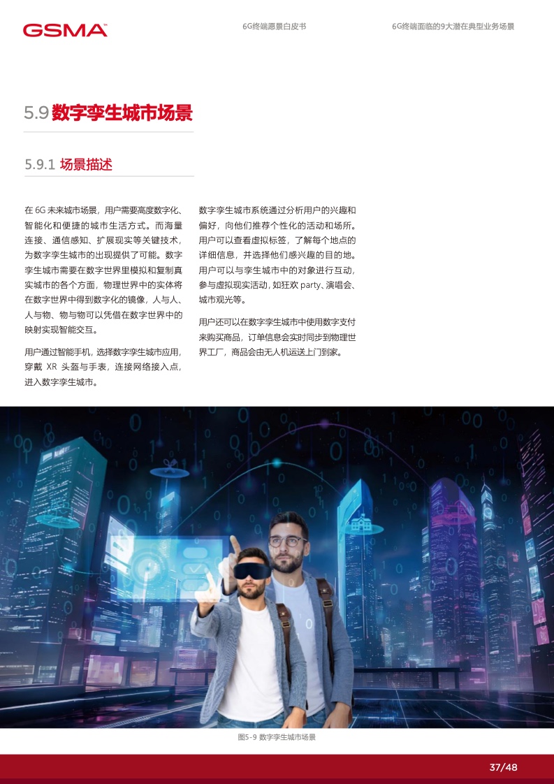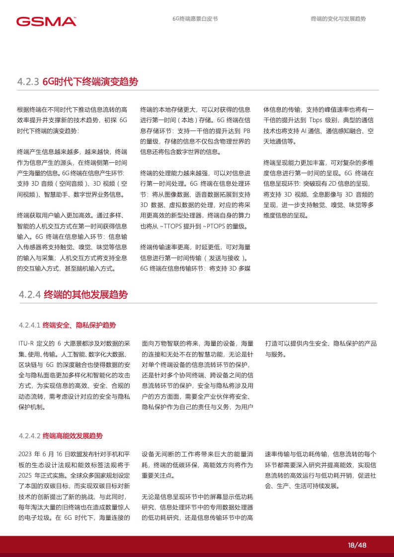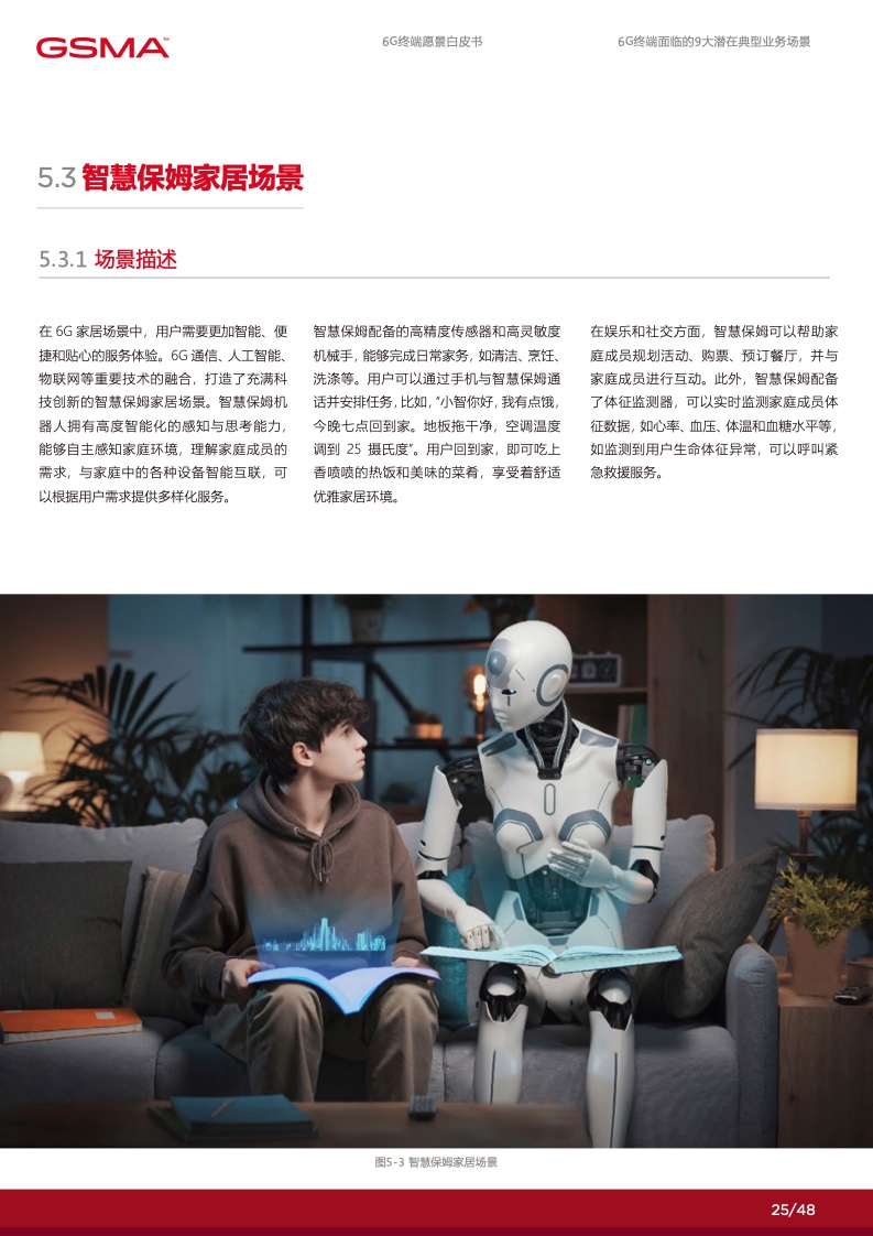 在 6G 赋能的数字化时代里,个人将拥有 更多定制化的数字服务使得社交沟通更加 便捷,家庭将通过智能化的家居系统提高 生活品质,产业将通过数智化技术实现增 效拓能。各行各业将逐渐摆脱传统的限制, 通过数字化手段创造出全新的商业模式和 机会。然而,要实现这一切,并迈入更高 级别的数字化社会,6G 终端将发挥关键 作用。数字化的广泛应用和全球数字化战 略的制定为 6G 终端的新能力提出了迫切 的需求,6G 终端将成为数字化时代的引 擎,满足不断增长的数字化需求,推动人 类社会迈向更加智能、高度互联的未来。