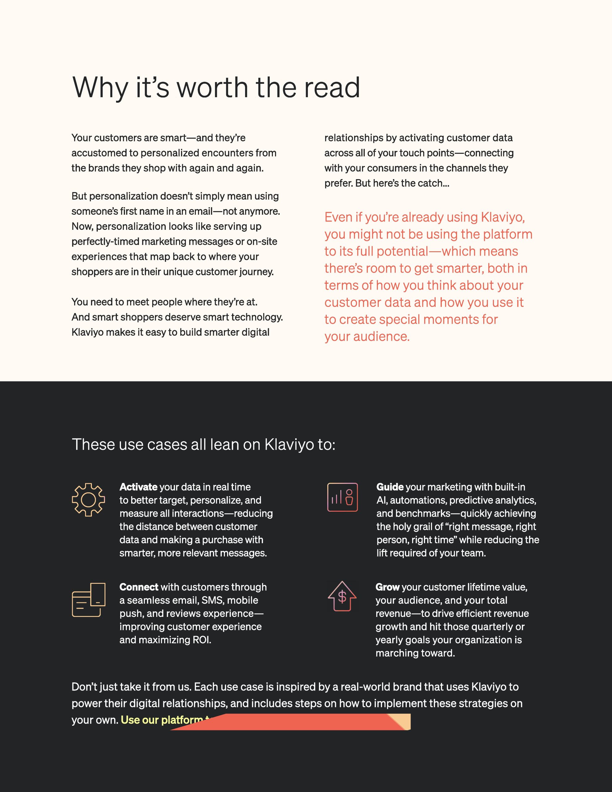 Klaviyo支持更智能的数字关系,使企业能够轻松捕获、存储、分析和预测使用自己的数据,以推动可衡量的高价值成果。
