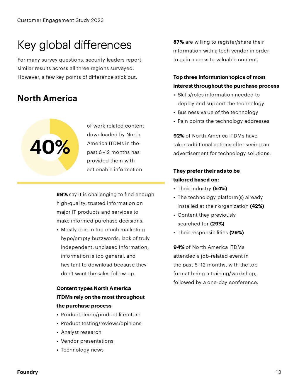 技术营销人员可能会遇到内容受限的问题。几个月前的一项研究发现,71%的科技产品购买决策者表示,他们经常(23%)或有时(48%)对B2B封闭内容感到失望。Foundry对IT决策者的一项调查显示,只有44%的人在过去一年中下载的与工作相关的内容提供了价值。