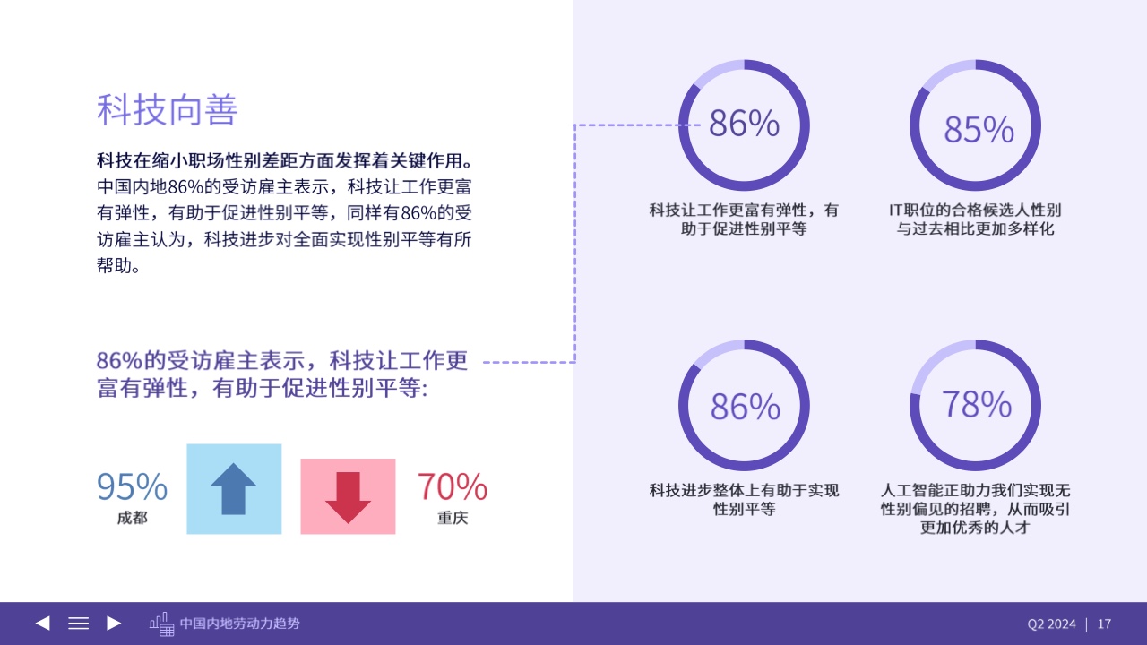 43%的中国内地受访雇主表示,强性工作帮助;他们留住了人才,井 扩大了人才库,使其更加多元化。