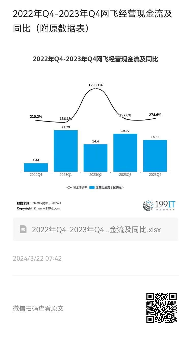 - 2023年Q4-2024年Q4网飞经营现金流及同比(附原数据表)