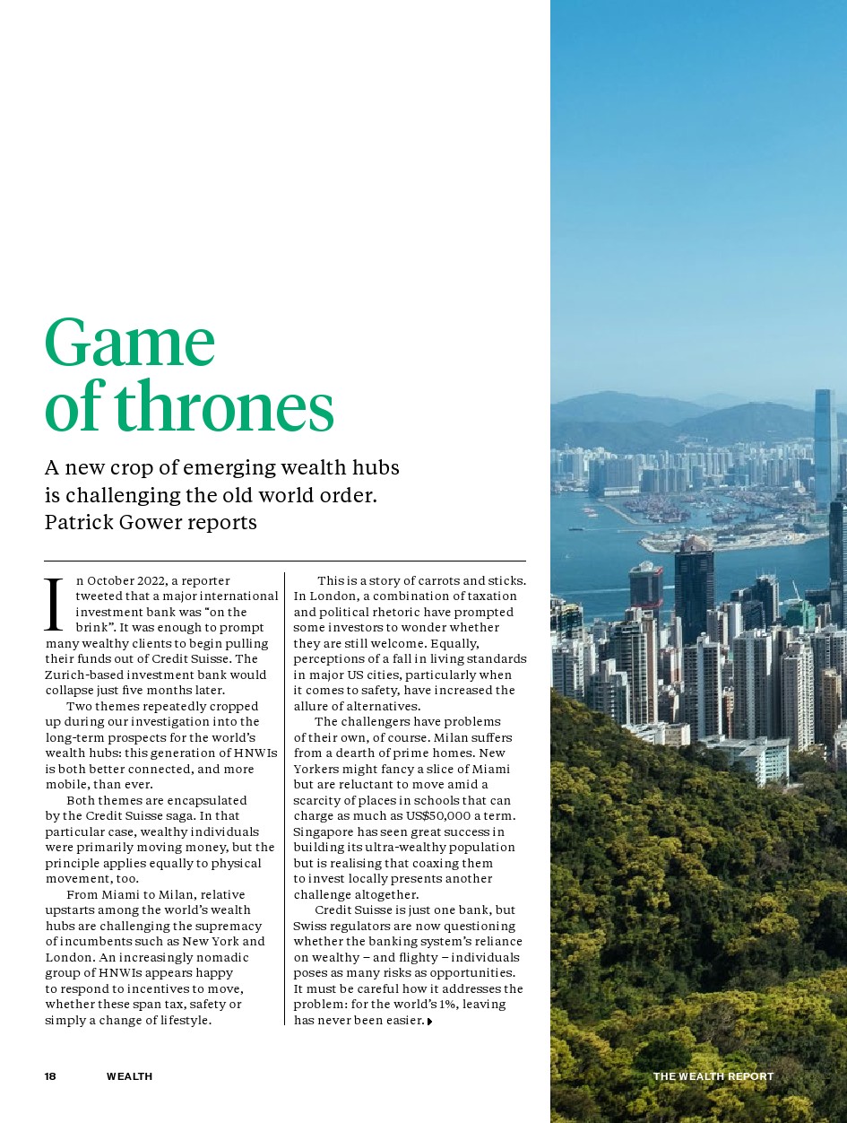 随着富有的个人比以往任何时候都更有联系,更愿意搬家,新兴的财富中心正在通过推出激励措施来挑战老牌全球门户的霸主地位。