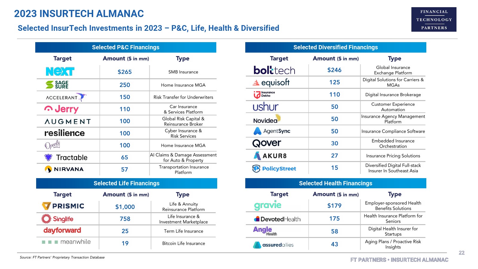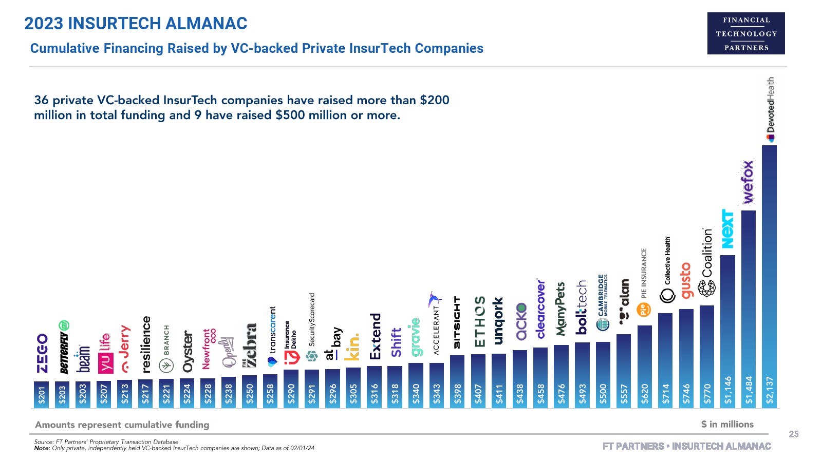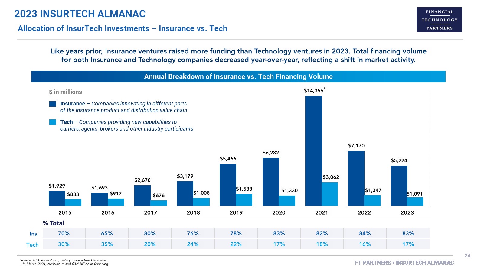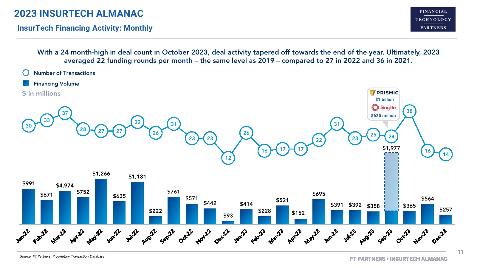 私营保险科技公司的融资活动在2023年经历了一段正常化时期,回落到“融资繁荣年”之前的水平,反映了更广泛的金融科技市场重塑。