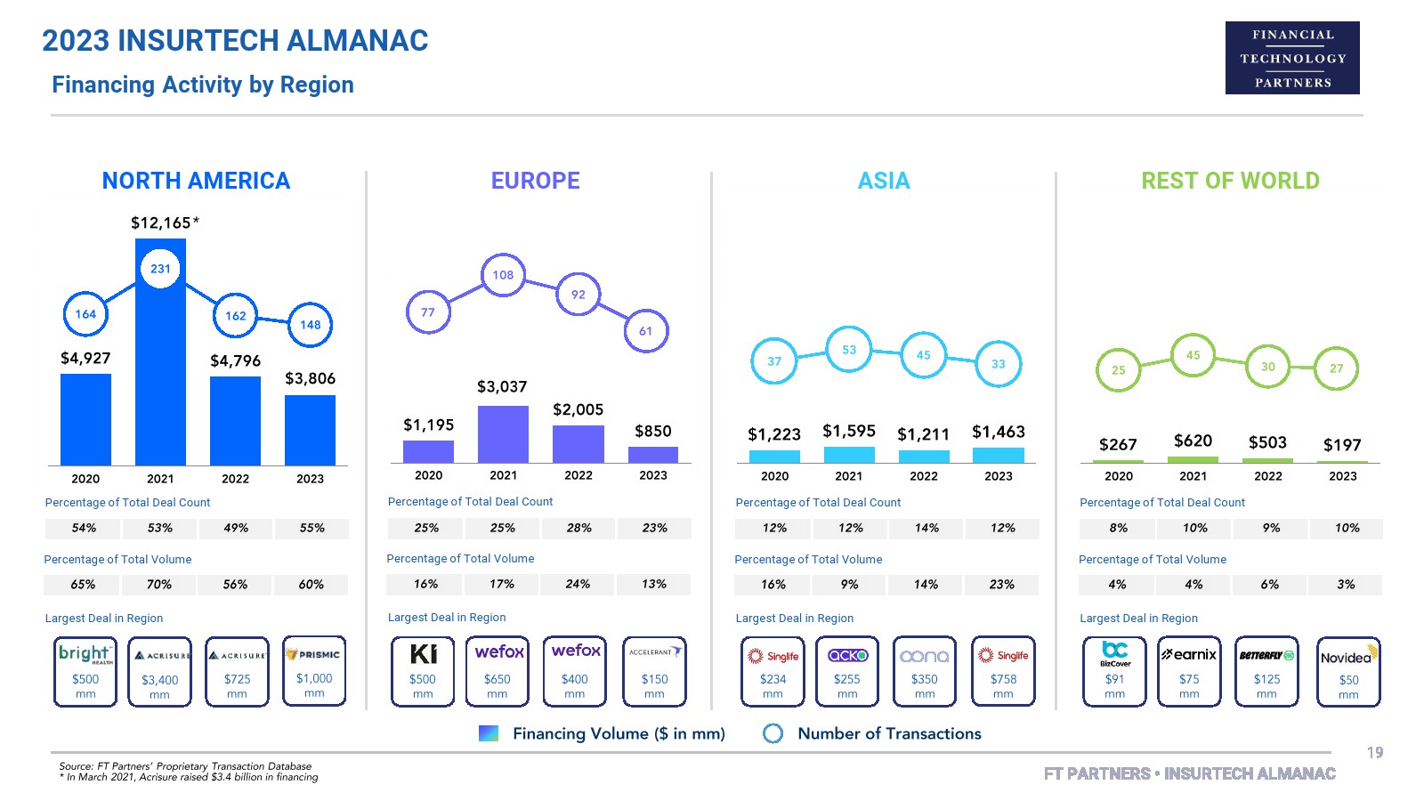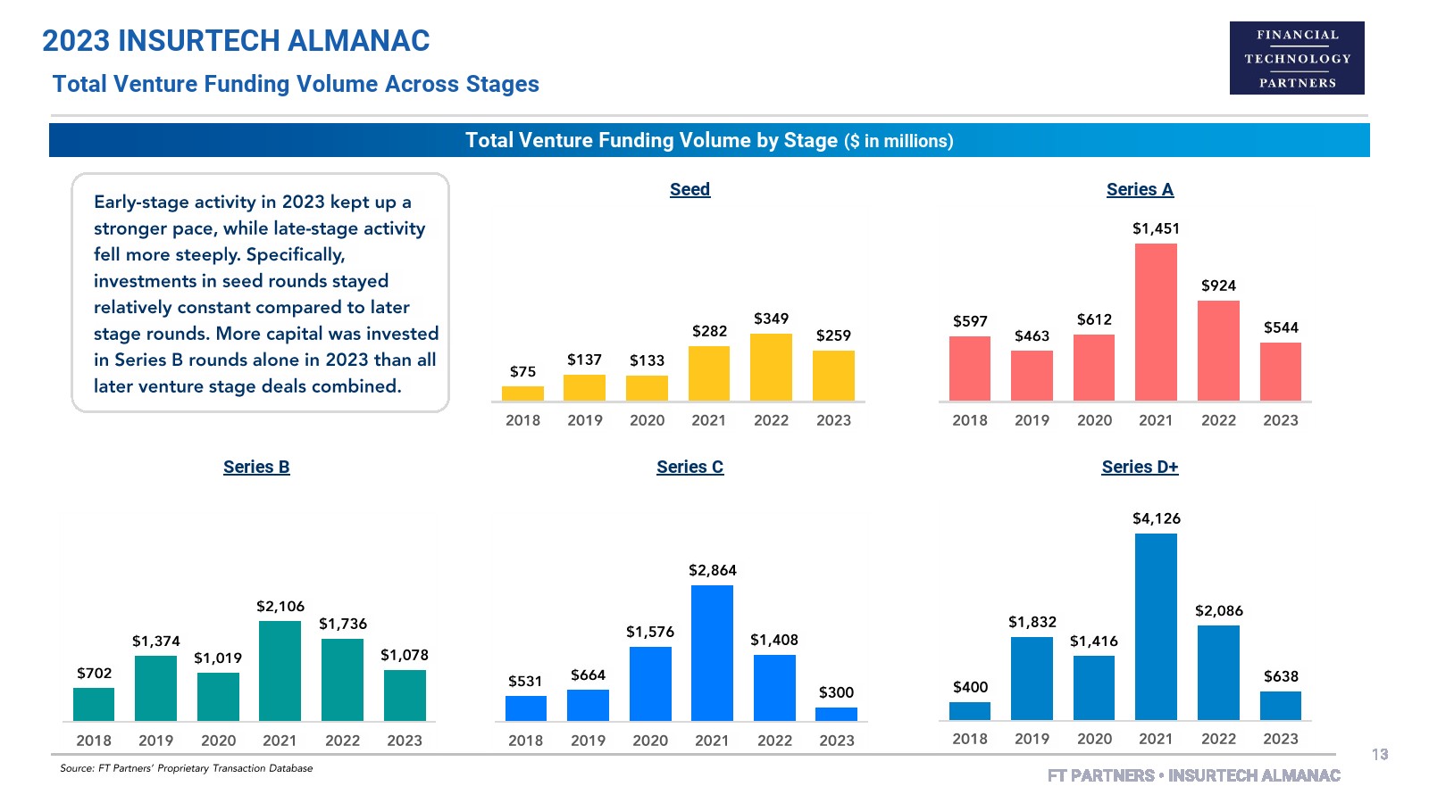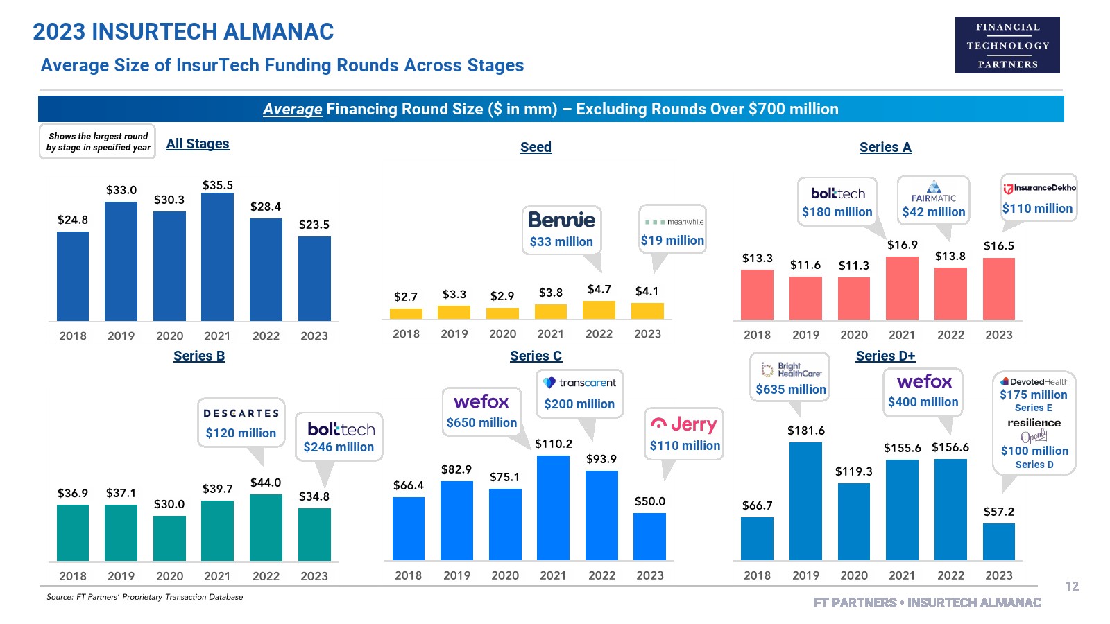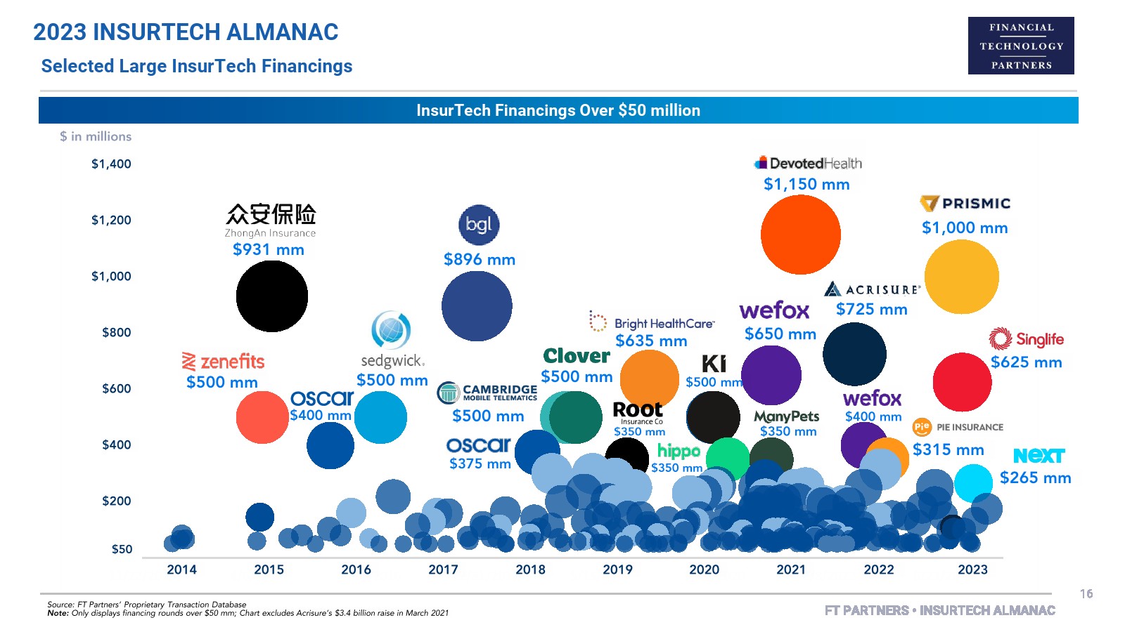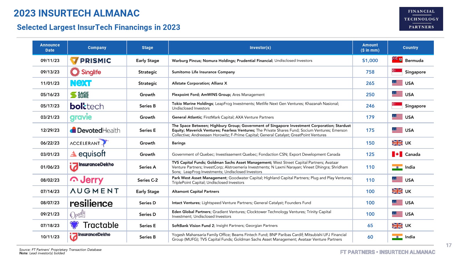 Bolttech的2.46亿美元B轮融资和InsuranceDekho的1.1亿美元A轮融资都促进了早期融资,分别是保险科技有史以来规模最大的A轮和B轮融资。