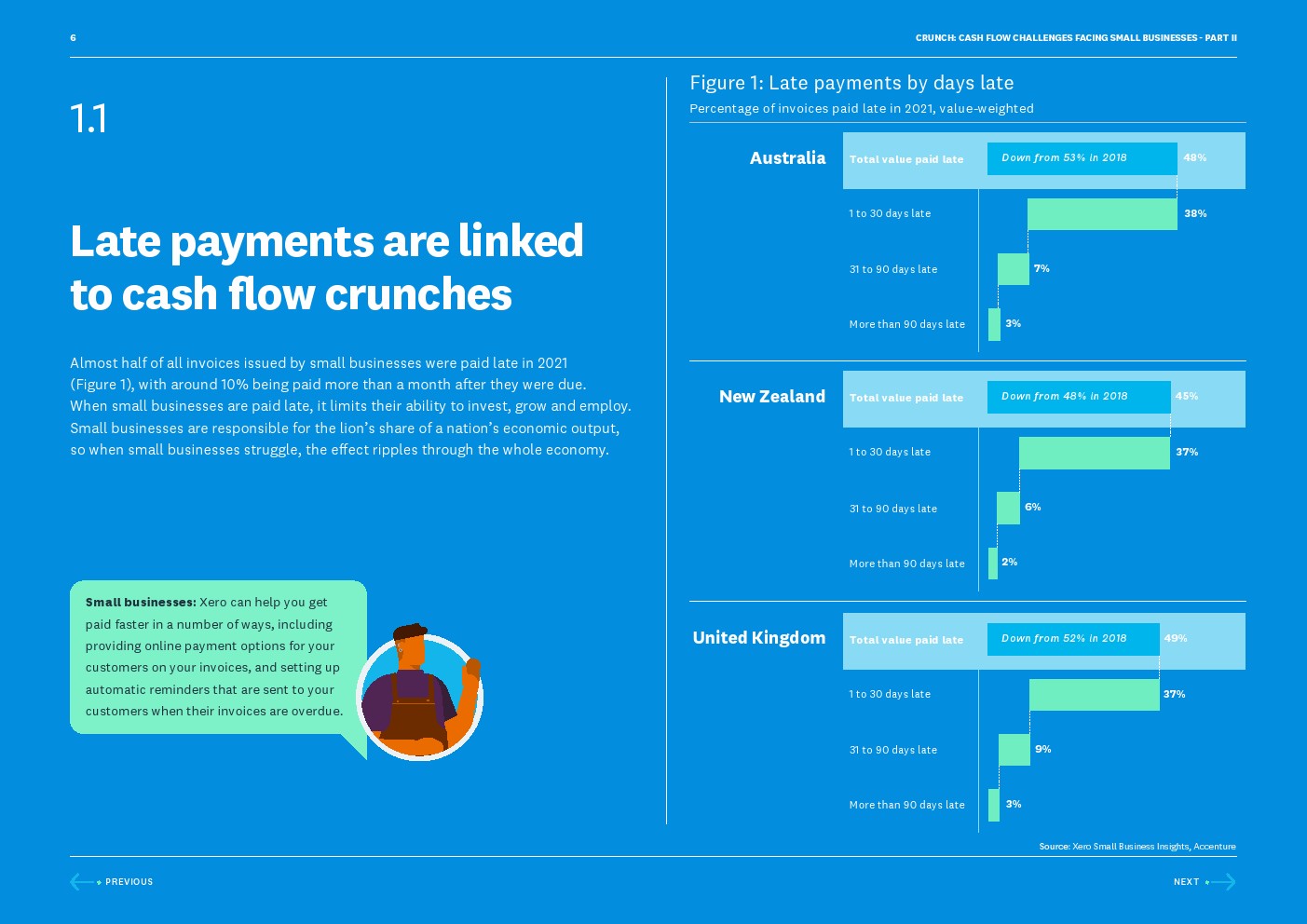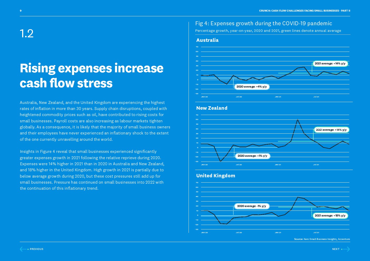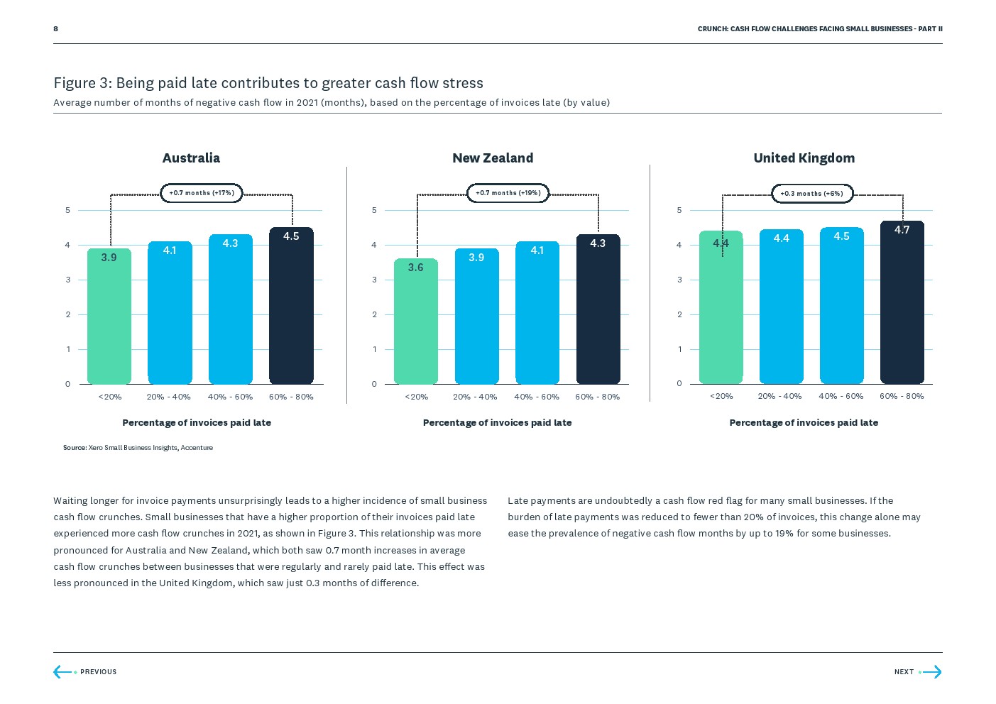 2021年,澳大利亚的小企业平均经历了4.2个月的负现金流,而新西兰的小企业经历了4个月,英国的小企业经历了4.5个月。