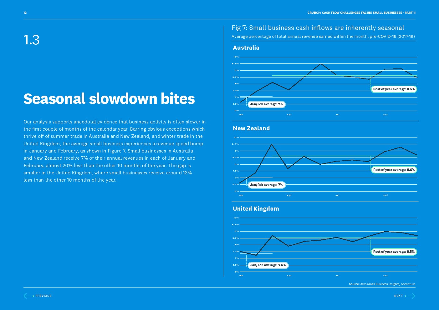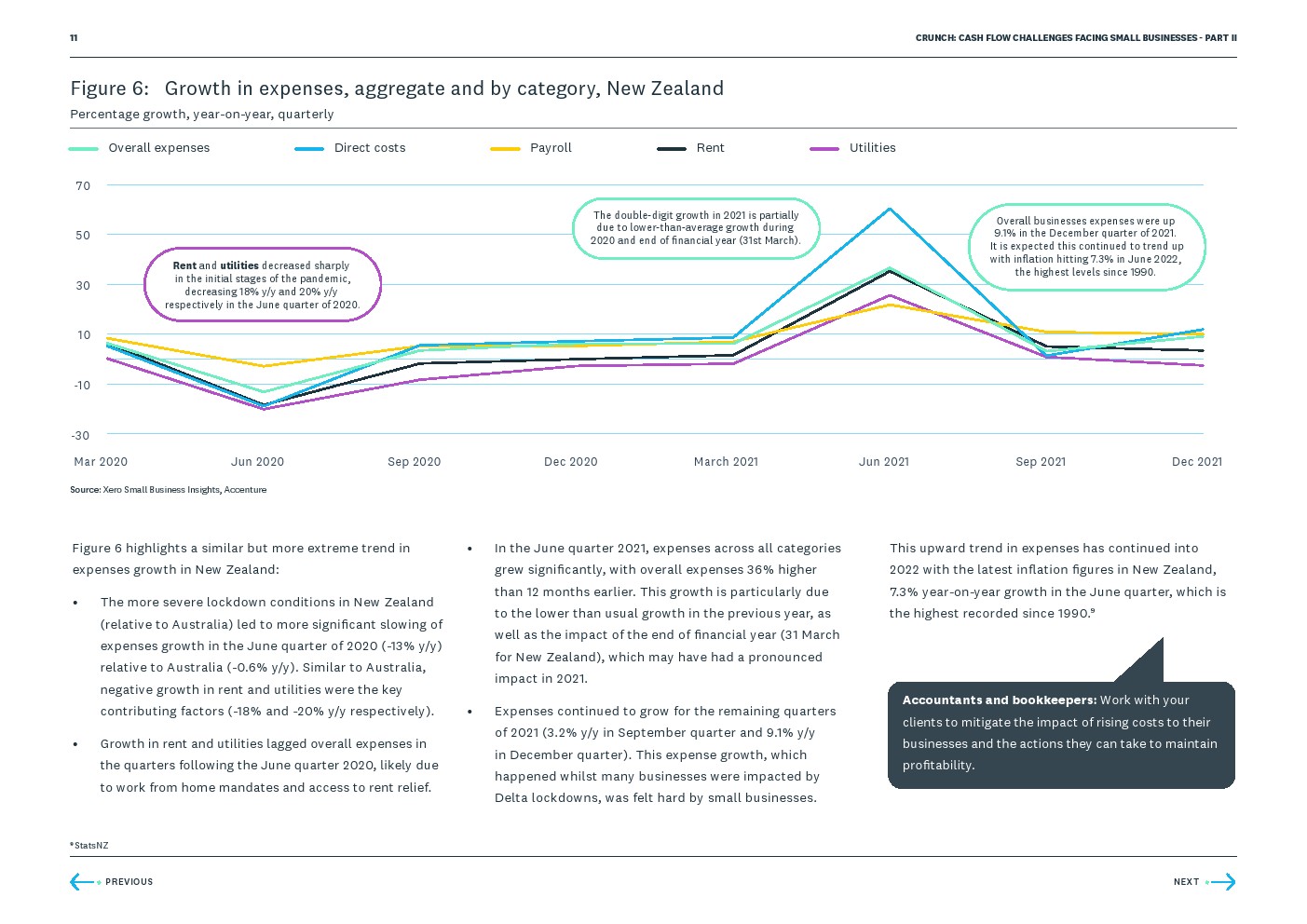 在澳大利亚,1/5的小企业在一年中经历了超过六个月的负现金流,这是持续现金流压力的潜在指标。相比之下,新西兰1/6的小企业和英国几乎1/4的小企业都是如此。
