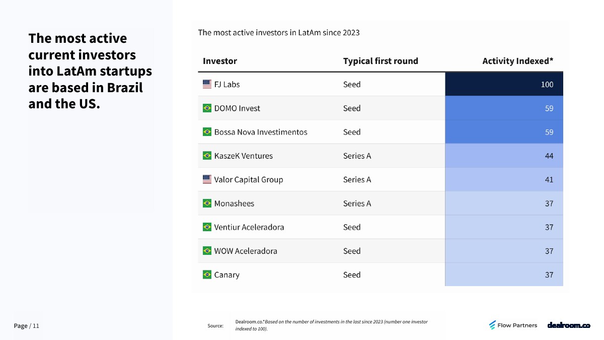 目前对拉丁美洲初创企业最活跃的投资者是巴西和美国。