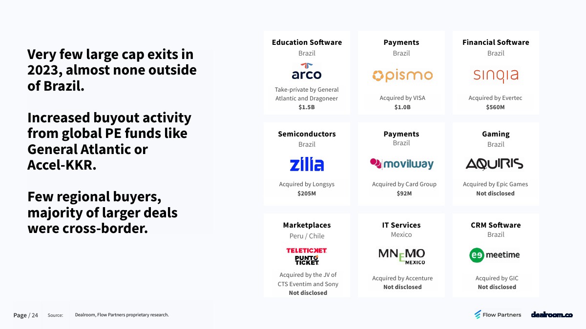 2023年很少有大型投资退出,巴西以外几乎没有。