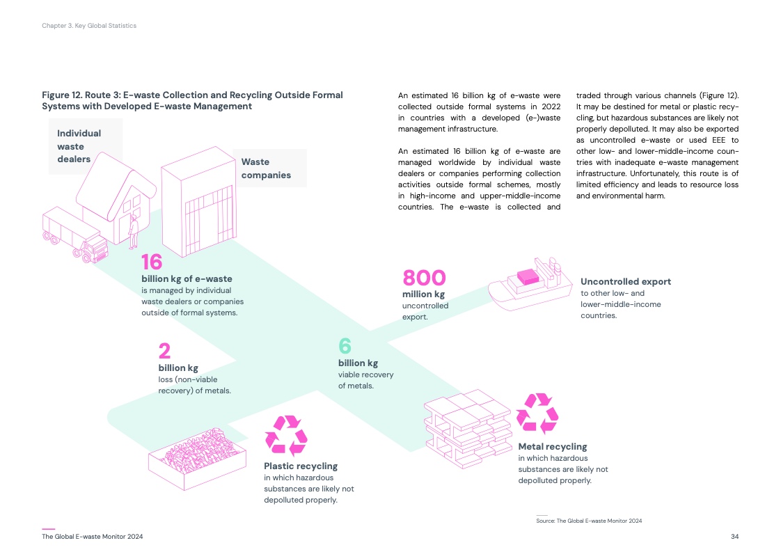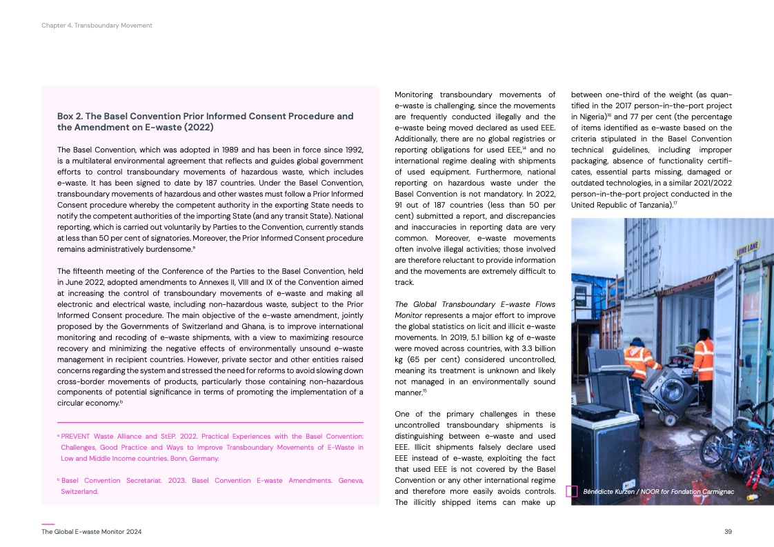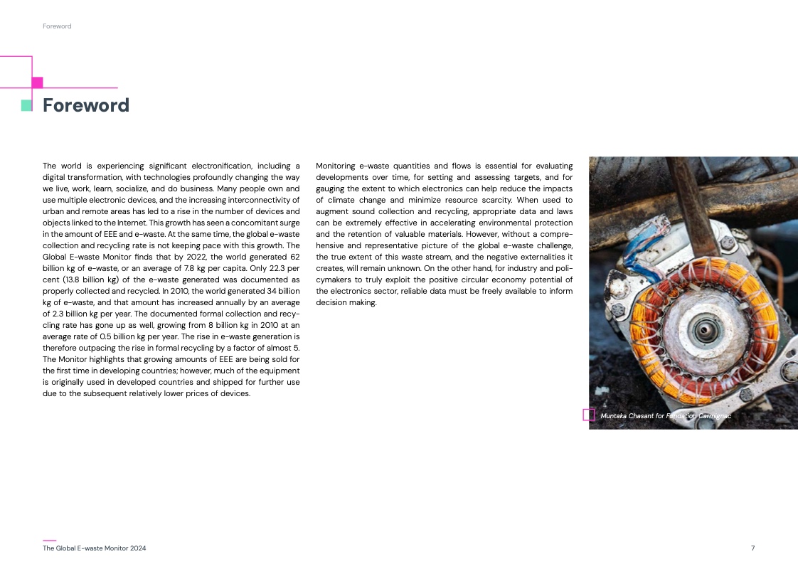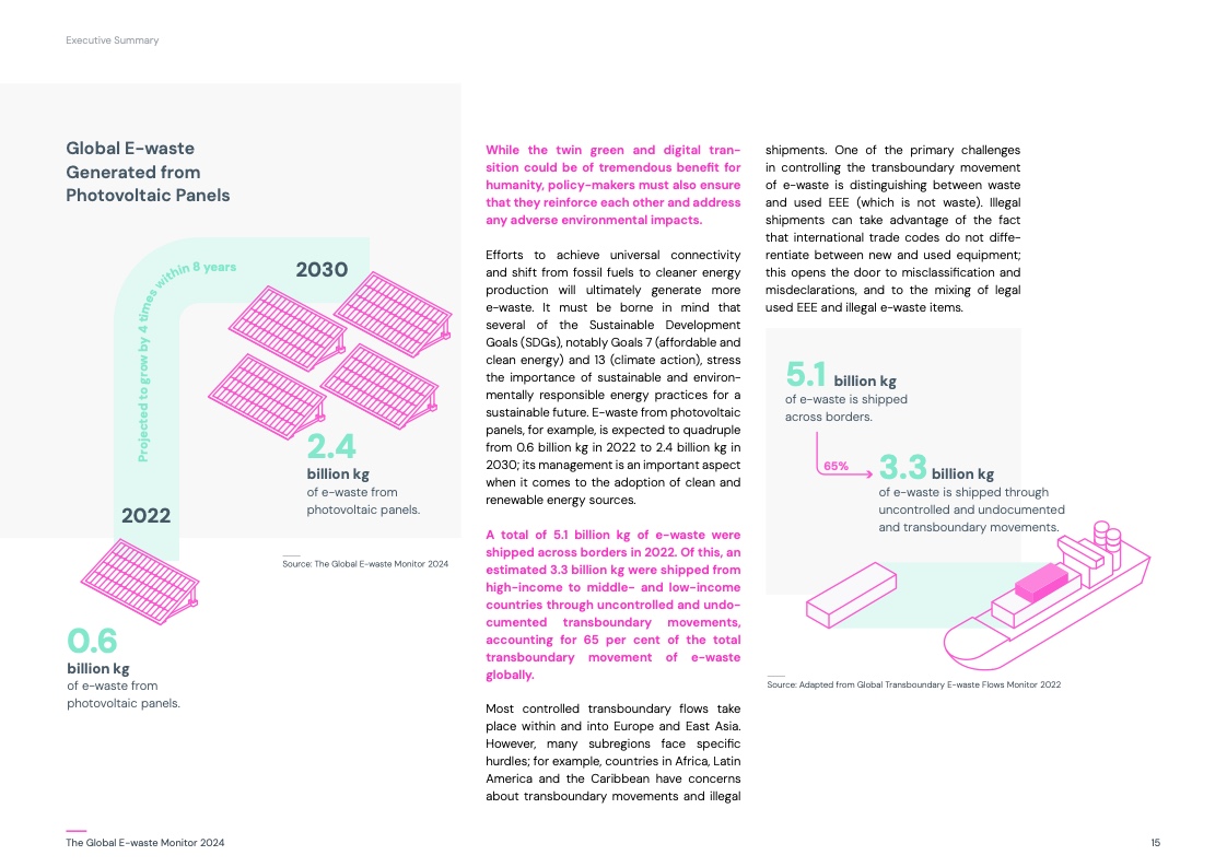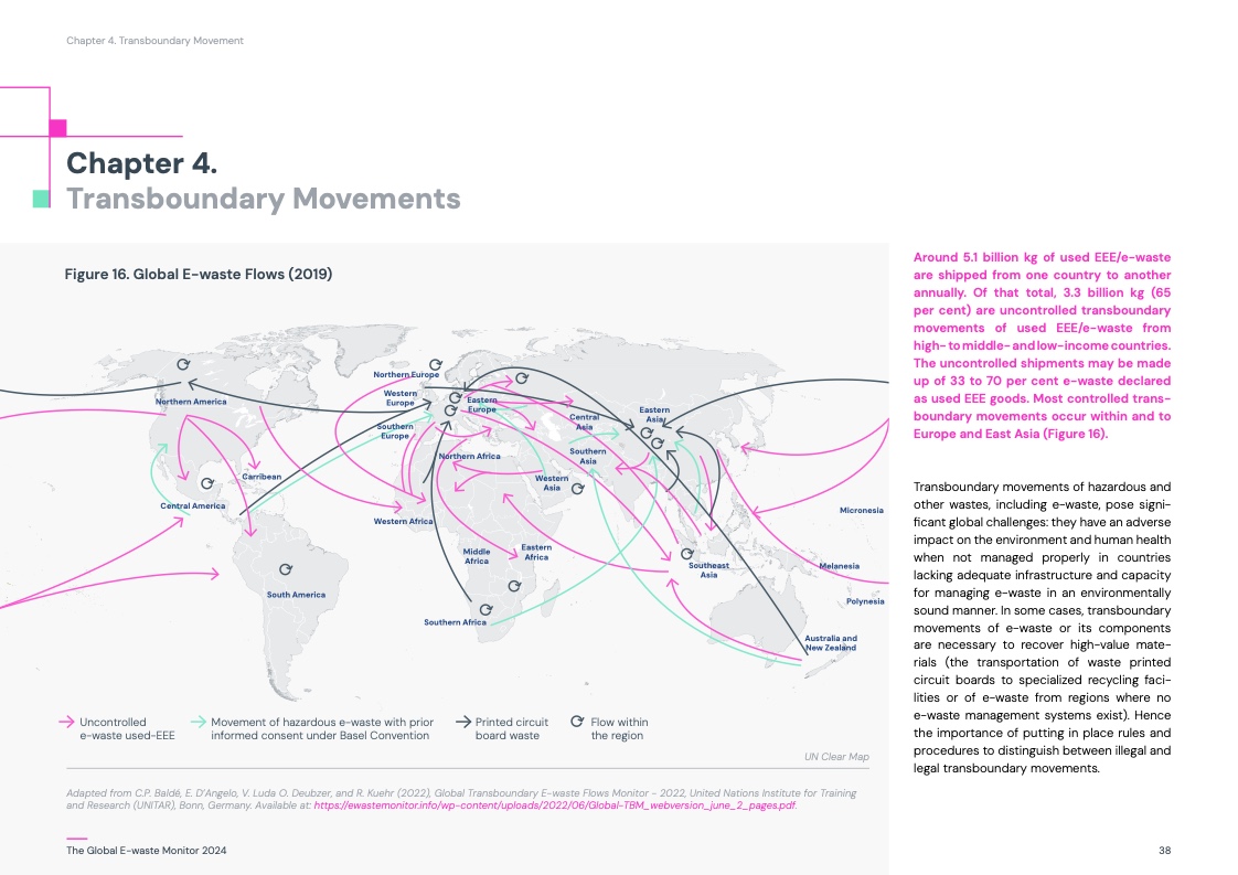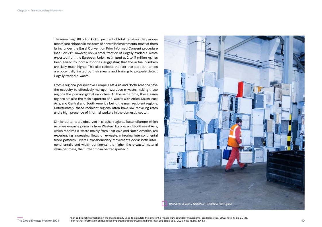 报告还发现,2022年跨境运输的电子废弃物达到510万吨,占全球总量的8.2%;其中,约有330万吨(65%)以不受控制且无记录的方式从高收入国家转运至中等收入和低收入国家。