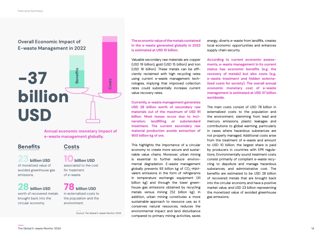 不过,报告仍然强调,如果各国在2030年能将电子废弃物的收集回收比率提升至60%,其产生的效益(包括最大限度地降低人类健康风险)将比回收成本多出380亿美元。