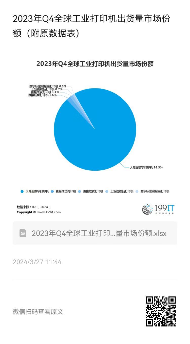 2023年Q4全球工业打印机出货量市场份额(附原数据表) ​​​