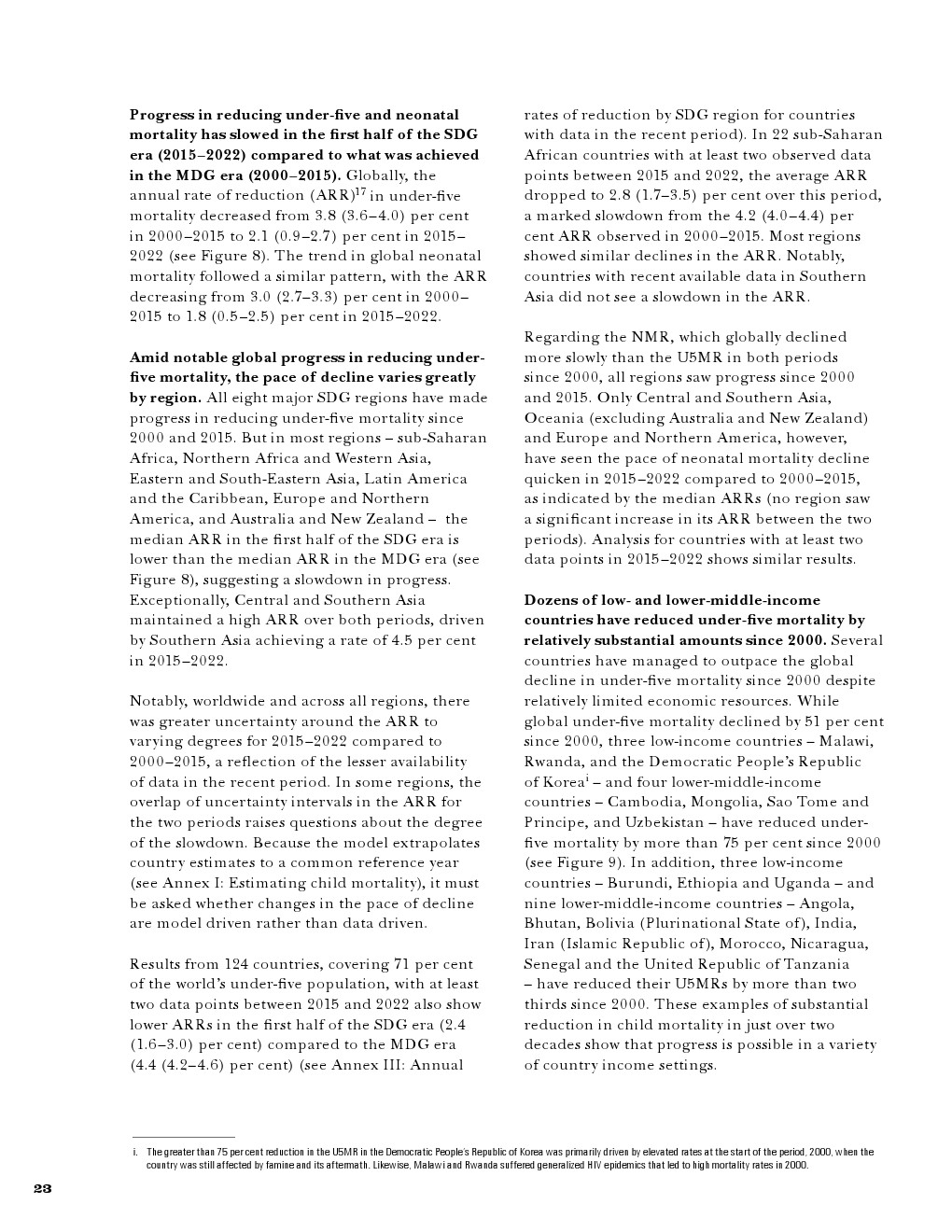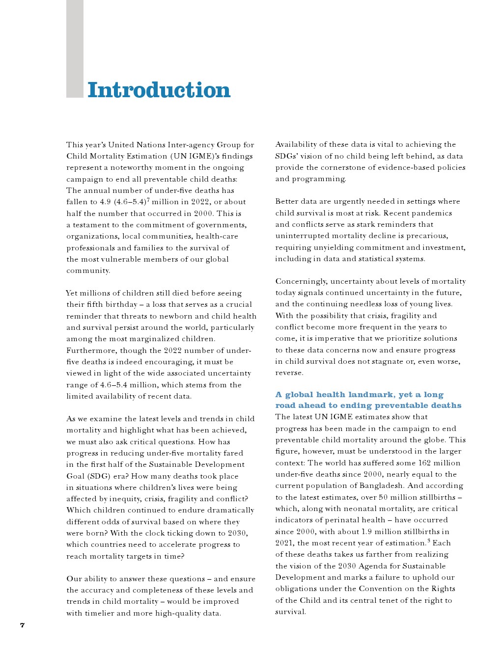 联合国儿童基金会发布了“2023年儿童死亡率报告”。报告显示,现在,存活儿童比以往任何时候都多,全球五岁以下儿童死亡率自2000年以来下降了51%。几个低收入和中等偏低收入国家的下降速度超过了全球速度。这表明,只要为包括儿童健康和福祉在内的初级卫生保健分配足够的资源,就有可能取得进展。调查结果显示,自2000年以来,柬埔寨、马拉维、蒙古和卢旺达五岁以下儿童死亡率下降了75%以上。
