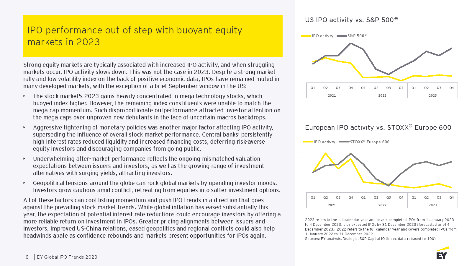 强劲的股票市场通常与IPO活动的增加有关,而当市场陷入困境时,IPO活动就会放缓。但2023年两者却不同步