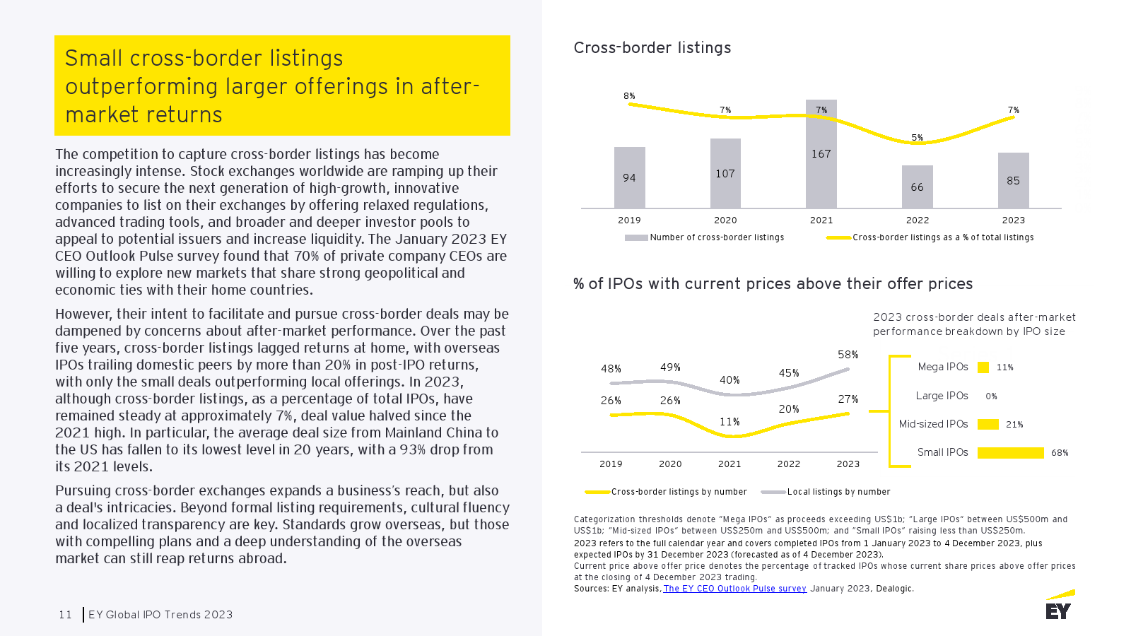 在售后市场回报方面,小型跨境IPO的表现优于大型IPO