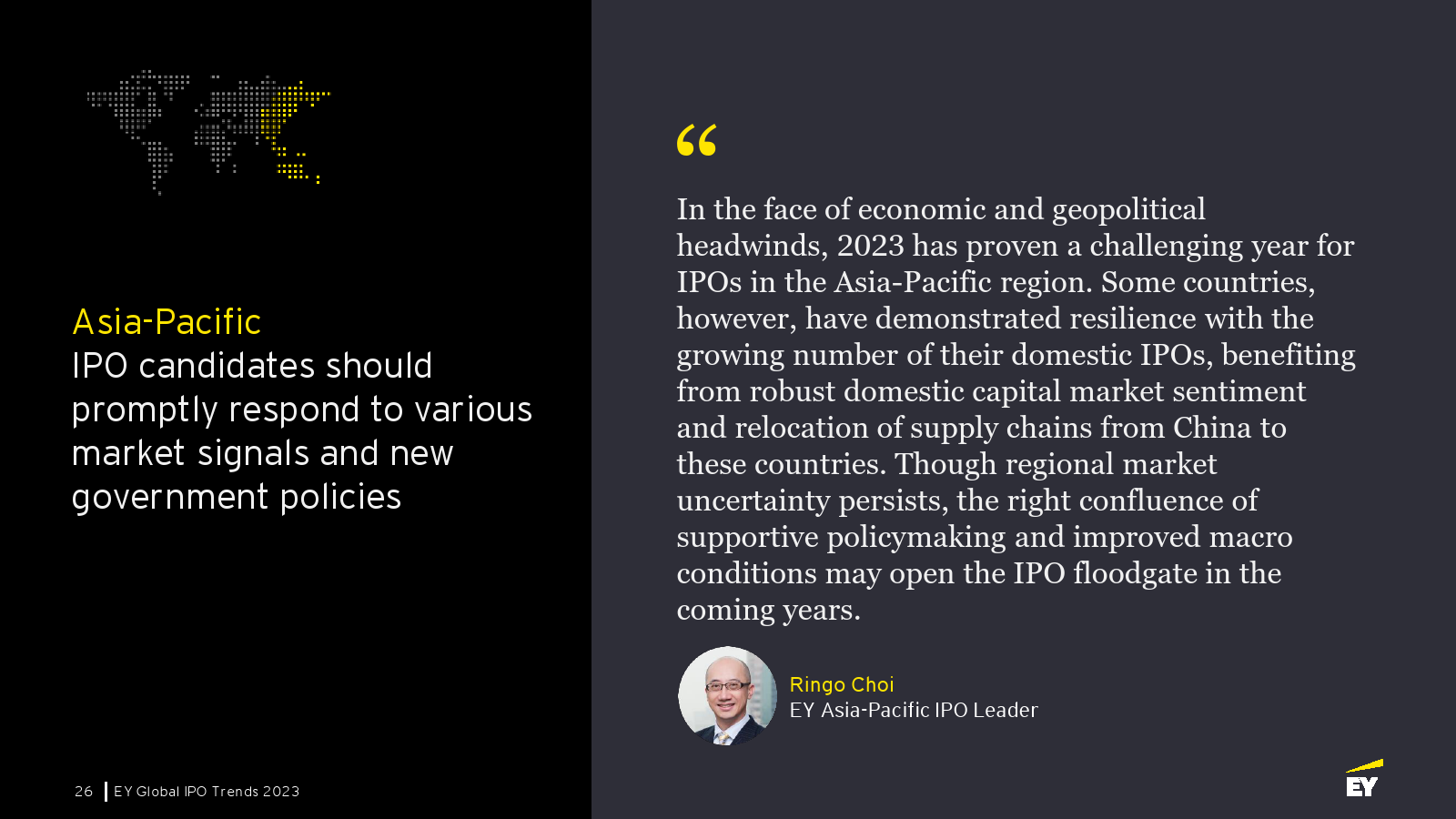 争夺跨境IPO的竞争已变得越来越激烈。2023年1月安永CEO调查发现,70%的私营公司CEO愿意探索与本国有着强大地缘政治和经济联系的新市场。