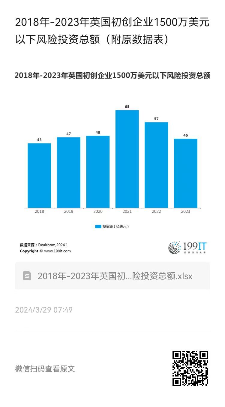 - 2018年-2023年英国初创企业1亿美元以上风险投资总额(附原数据表)
