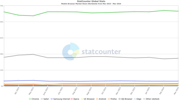 在移动市场,微软 Edge 的份额为 0.3%,2024 年 3 月下降了 0.02 个百分点。微软 正在为移动版 Edge 浏览器开发浏览器扩展支持,也许它能帮助一些用户从 Chrome 浏览器或三星 Internet 转换过来。