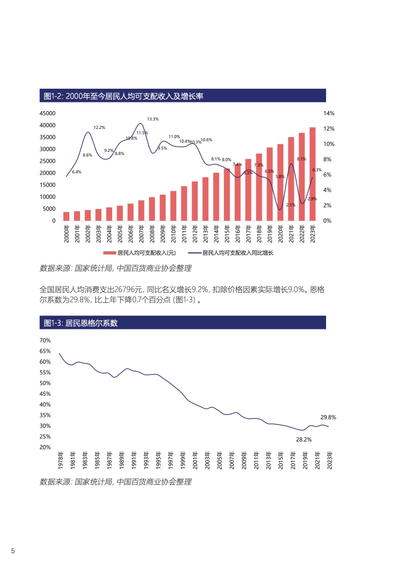 全国居民人均消费支出26796元,同比名义增长9.2%,扣除价格因素实际增长9.0%。恩格 尔系数为29.8%,比上年下降0.7个百分点。