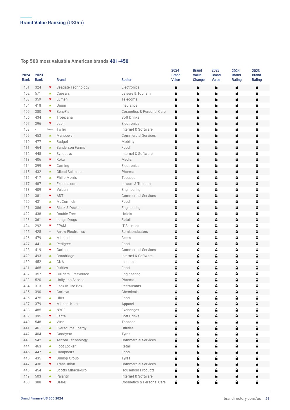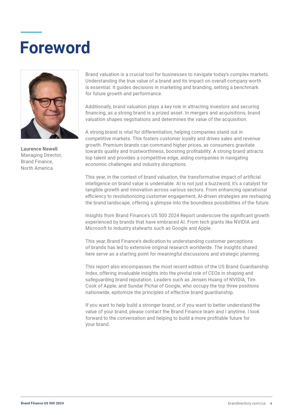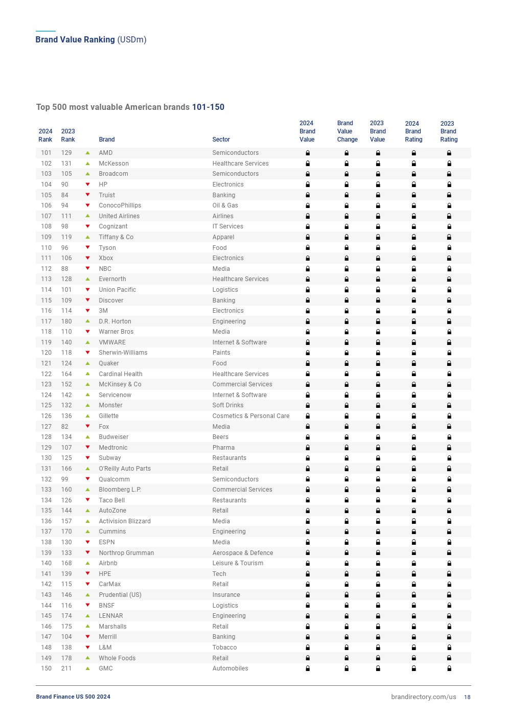 Brand Finance发布了“2024年美国品牌价值500强”。围绕人工智能(AI)的应用、影响和实际商业价值的持续讨论中,人工智能已经在加速美国品牌的价值增长。
