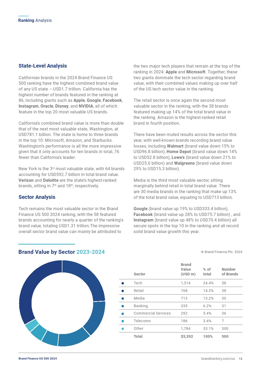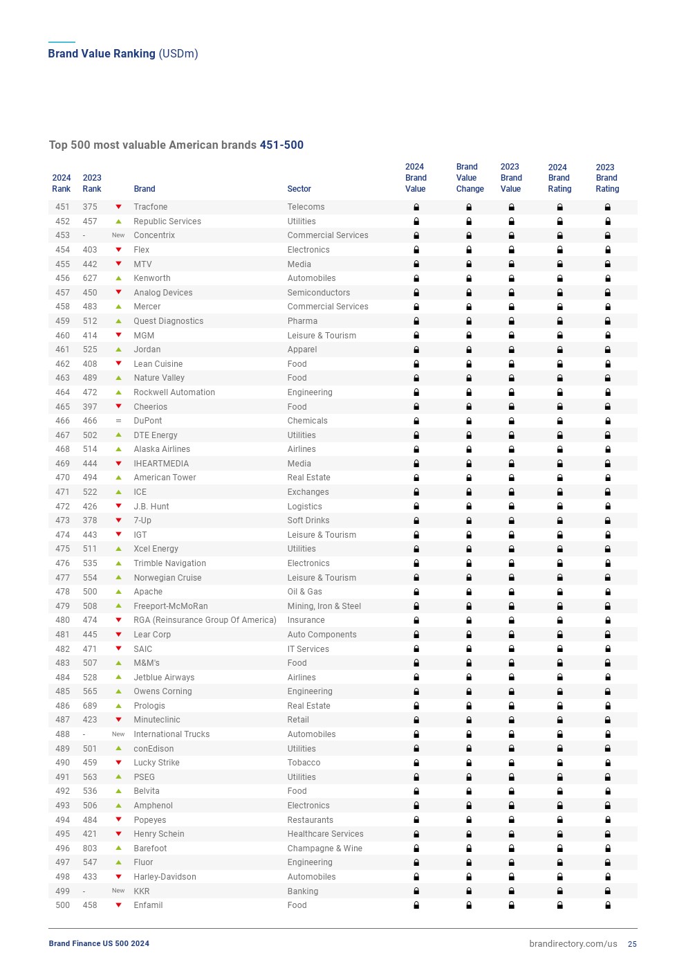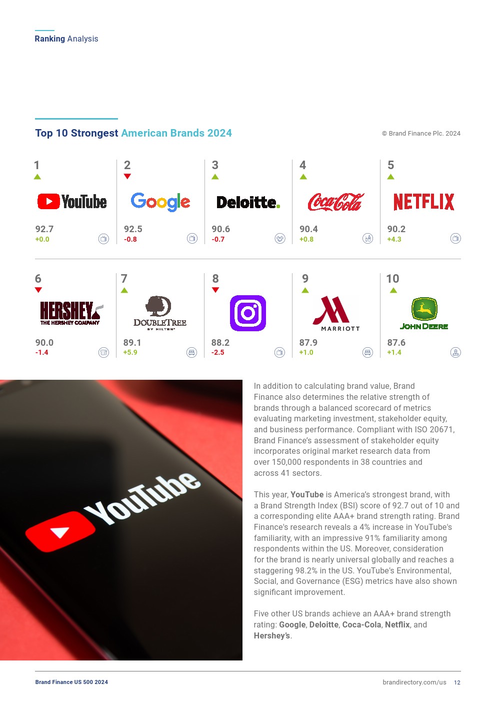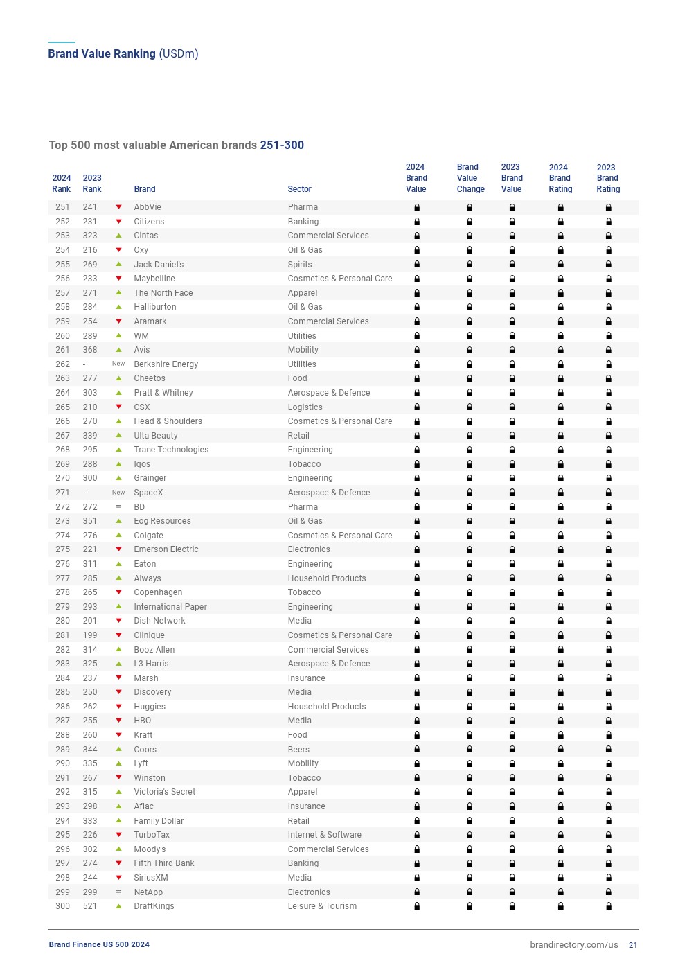 Brand Finance发布了“2024年美国品牌价值500强”。围绕人工智能(AI)的应用、影响和实际商业价值的持续讨论中,人工智能已经在加速美国品牌的价值增长。