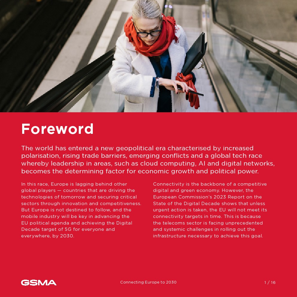 GSMA和欧洲领先的移动运营商发布的最新报告概述了欧洲移动连接行业的战略愿景。报告呼吁进行关键的政策改革,以确保以强劲、持续的网络创新为基础的欧洲数字经济能够在2030年之前在全球科技竞赛中重新确立领导地位。