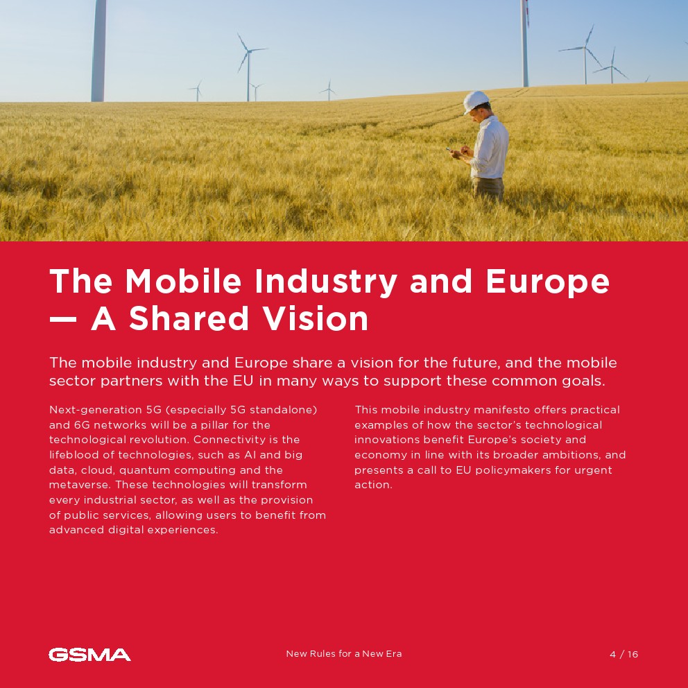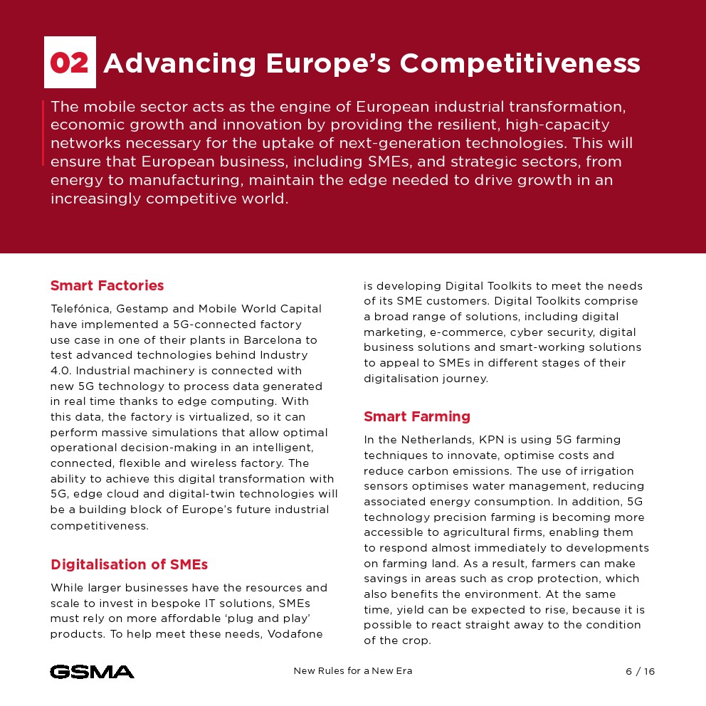 宣言概述了几个战略行动领域,强调了下一代互联互通、数字创新和绿色转型的重要性。它展示了欧洲各地的成功举措,从智能工厂和中小企业的数字工具包到智能农业和城市管理的开创性项目,展示了移动行业推动经济增长、可持续性和社会效益的潜力。