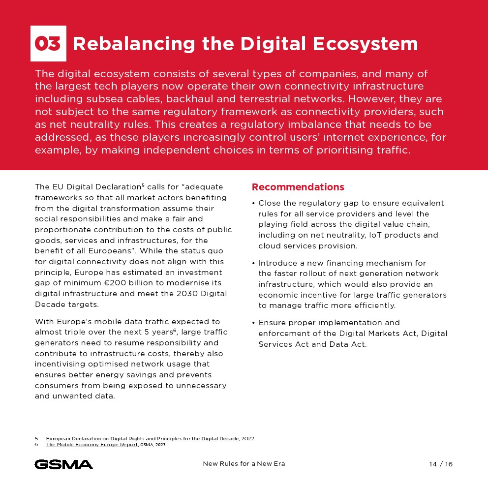 宣言呼吁欧盟政策制定者采用新的数字基础设施框架,以促进投资、创新和协调数字市场。建议包括解决电信市场的碎片化问题,实施更有利于投资的频谱政策,缩小不同数字服务提供商之间的监管差距,以及更新基于历史的规则以反映当前的现实。