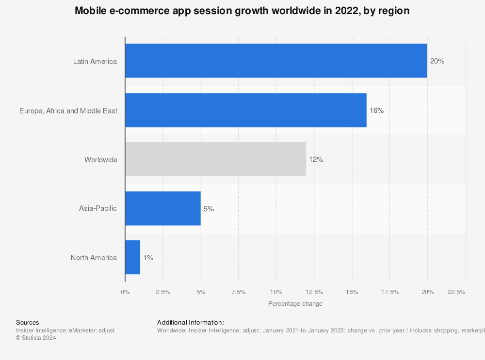 2023年,全球约有30%的互联网用户每周通过手机购物。从美国到中国,移动商务已成为众多购物者的习惯。然而,不同市场对移动商务的重视程度也不尽相同。在欧洲,英国是2022年移动参与电子商务程度最高的国家,占所有在线零售额的一半以上,而瑞士仅为三分之一。