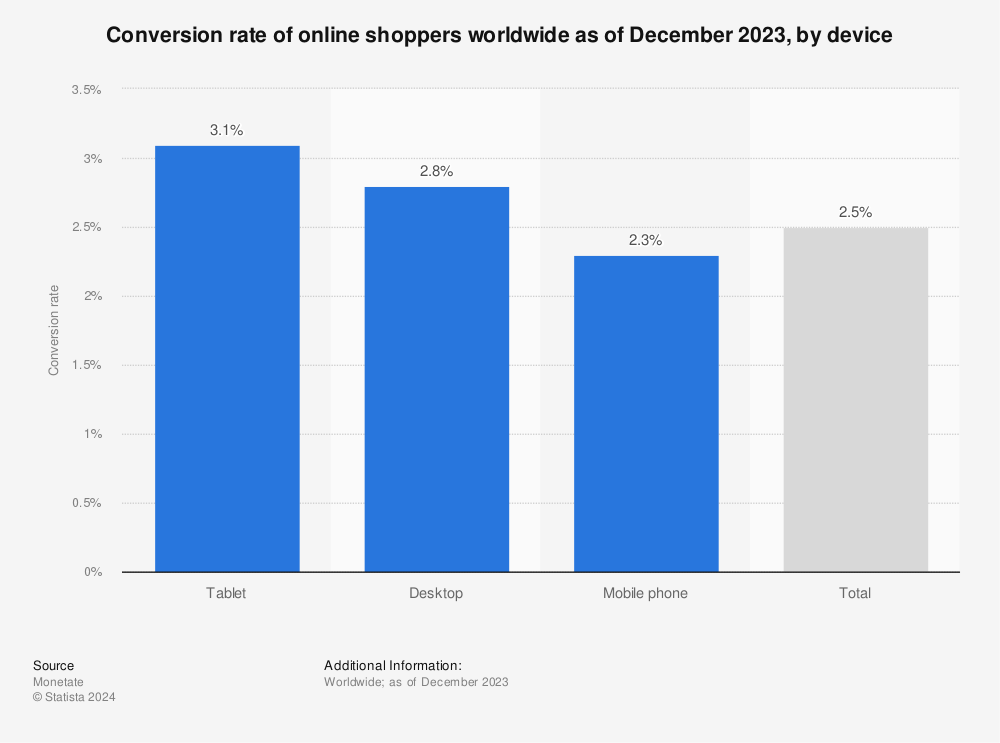 近年来,手机已成为全球网购的首选。虽然手机在向购物车添加商品方面表现出色,但在完成交易方面仍有不足,其转换率低于其他设备。2023年的购物车放弃数据表明,无论使用哪种设备,价格更高和更个性化的产品往往会让消费者重新考虑购买。不过,在所有产品类别中,台式机的购物车放弃率始终最低。希望利用移动设备销售的零售商面临的挑战是如何针对这一技术优化网站或开发应用程序,以确保无缝购物体验。尽管做出了这些努力,许多购物者在付款时仍然更喜欢大屏幕和安全的台式机。