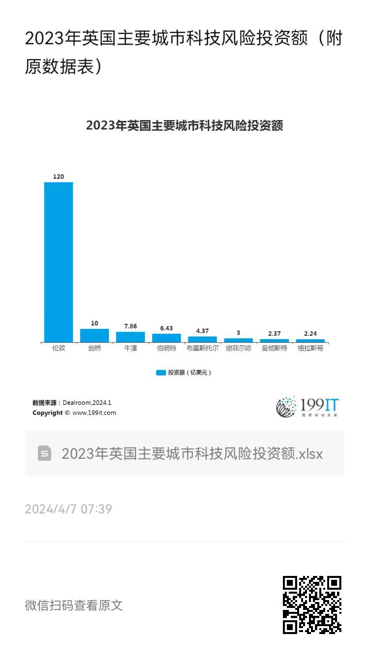 2023年英国主要城市科技风险投资额(附原数据表) ​​​