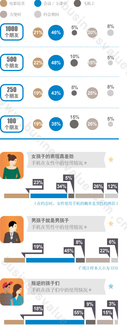 手机成瘾已经成为了一个社会学课题,虽然没有到“病态”那么严重,只不过大多数用户希望用智能手机来打发时间,但在使用的时候也应注意些礼节。情侣约会时 拿出智能终端,使用LBS功能找几个周围有情调的餐厅、咖啡厅;又或者即时订张电影票,这都是智能手机所带来的便利。可如果坐在餐厅里,把对方丢在一旁只 顾玩手机,在电影院里疯狂接打电话可能就会带来负面效应。