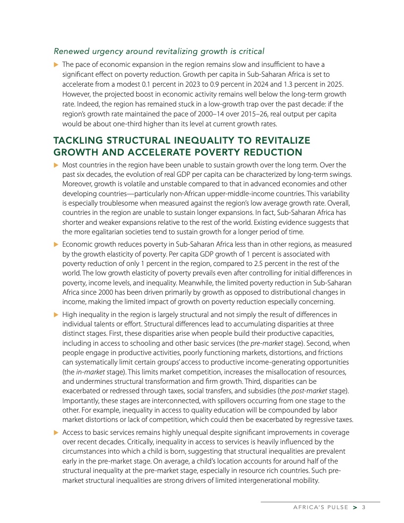 报告认为,需要采取变革性的政策来解决根深蒂固的不平等问题,以维持长期增长和有效减贫。