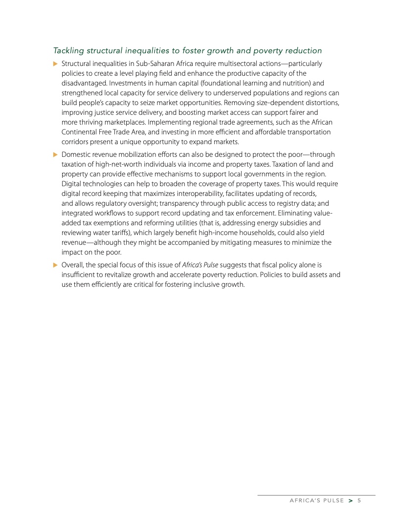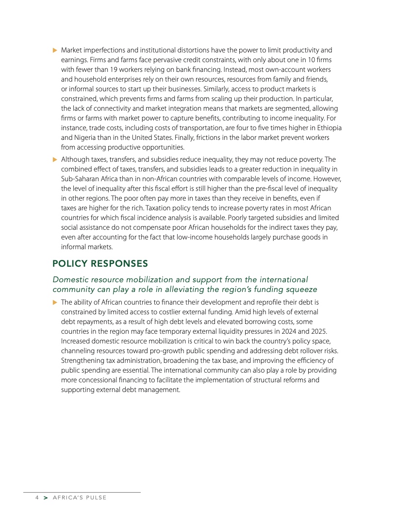 报告呼吁采取几项政策行动,以促进更强劲和更公平的增长。这些措施包括恢复宏观经济稳定,促进代际流动,支持市场准入,以及确保财政政策不会让穷人负担过重。