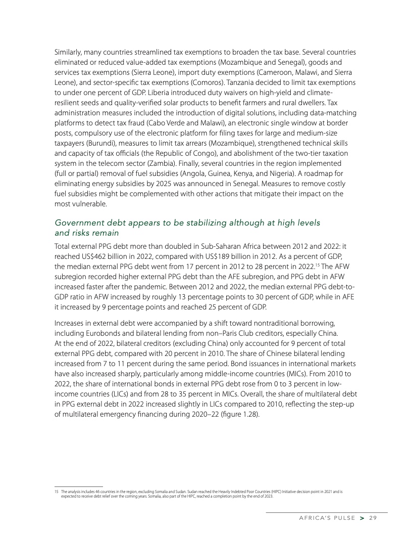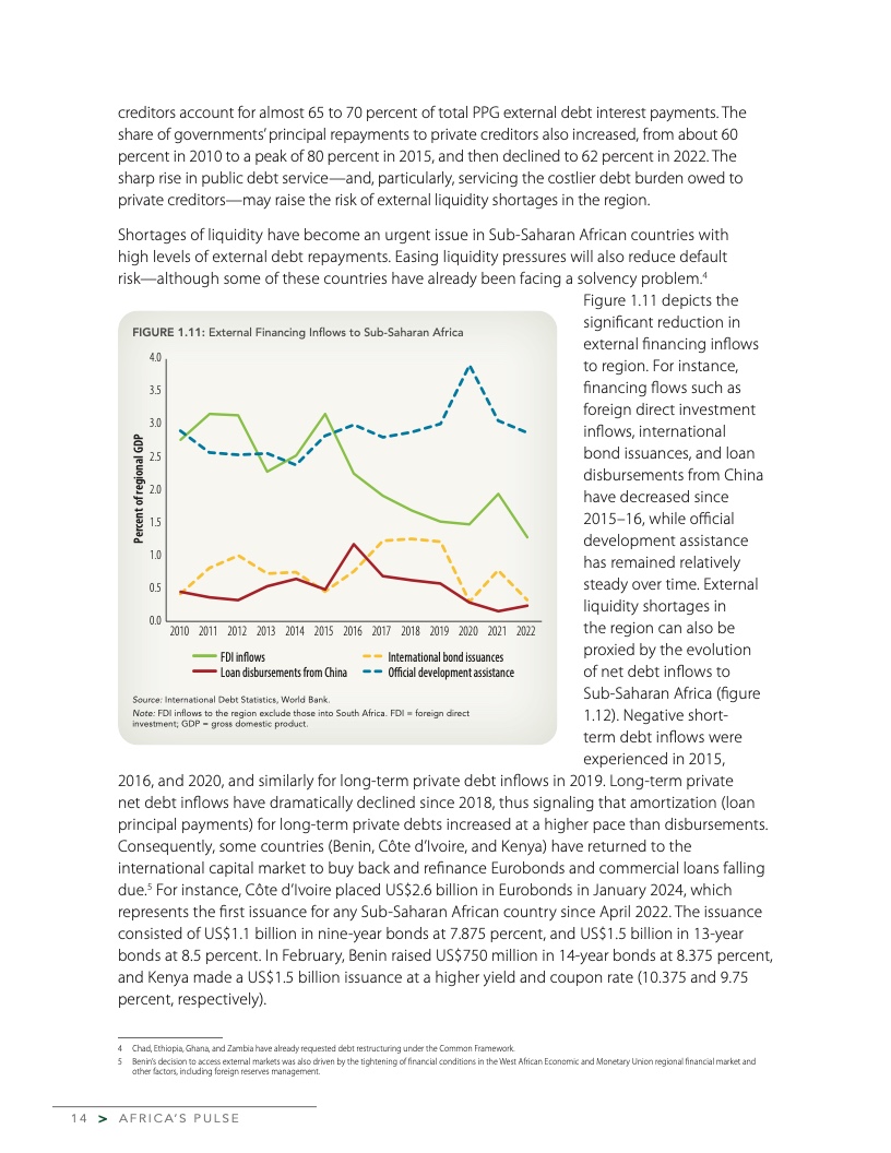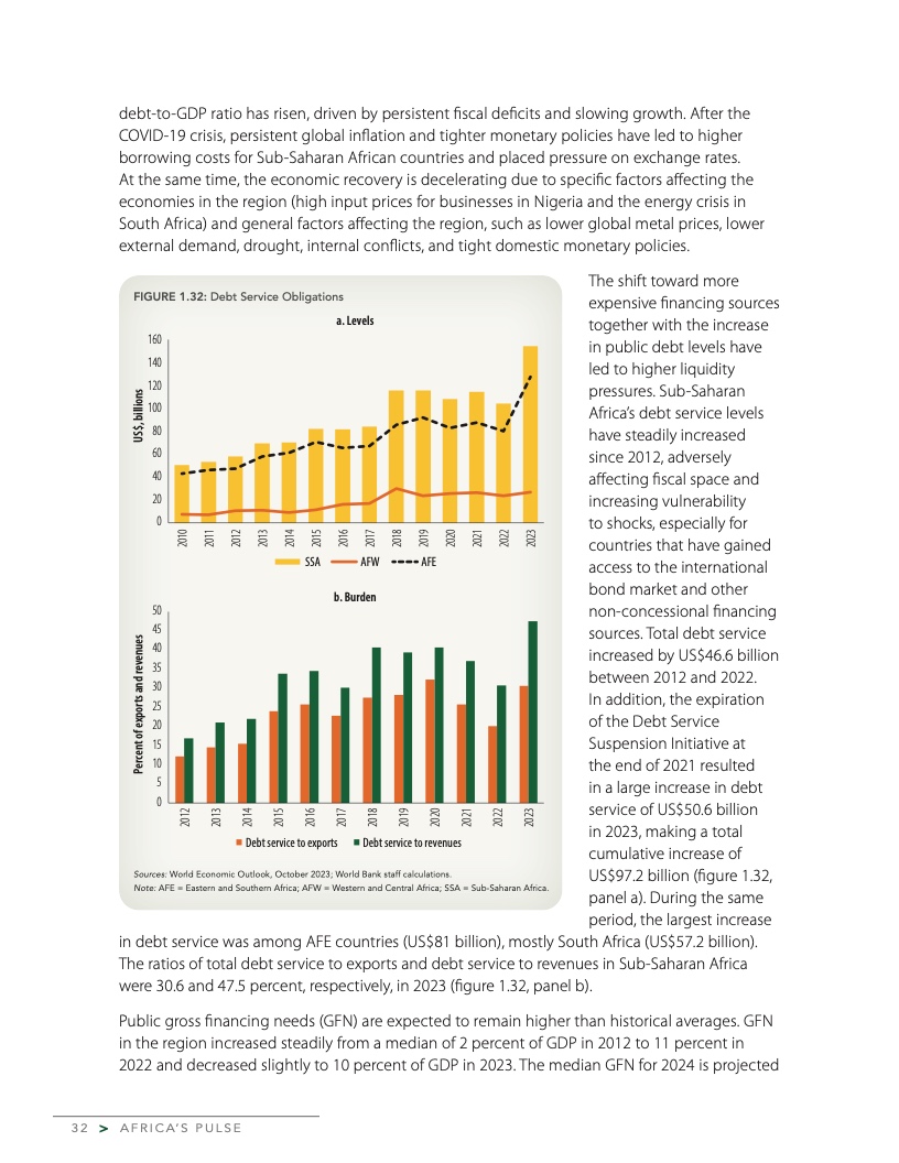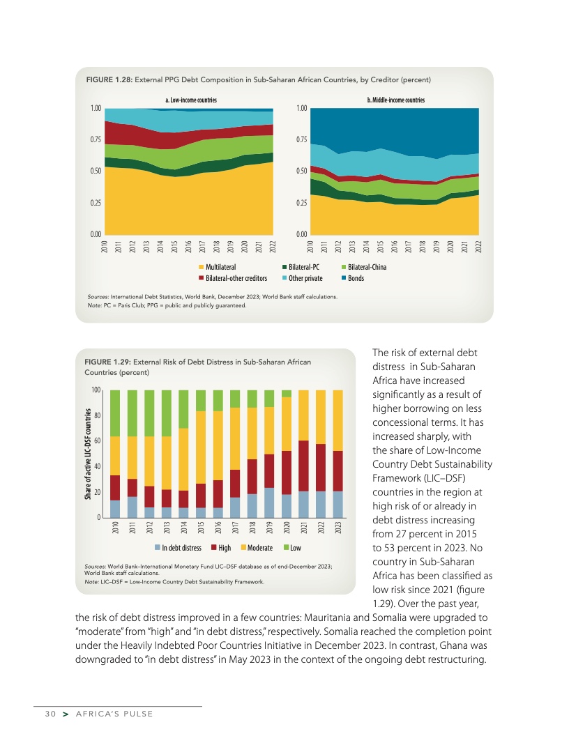 此外,尽管公共债务增长正在放缓,但一半以上的非洲国家政府仍在努力应对外部流动性问题,并面临不可持续的债务负担。