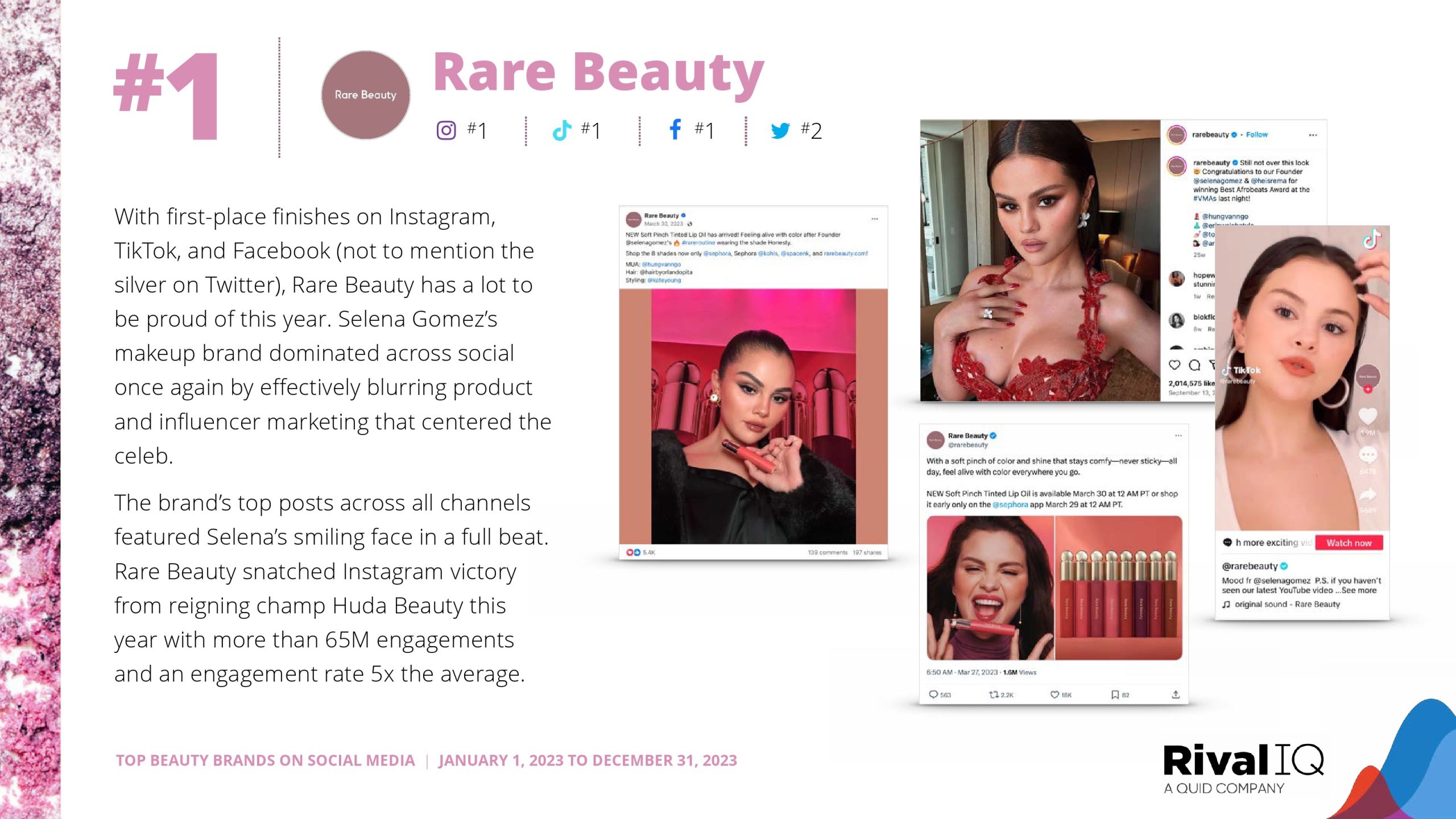 Selena Gomez的《Rare Beauty》经历了爆炸性的一年,在四个频道中有三个获得了总冠军。