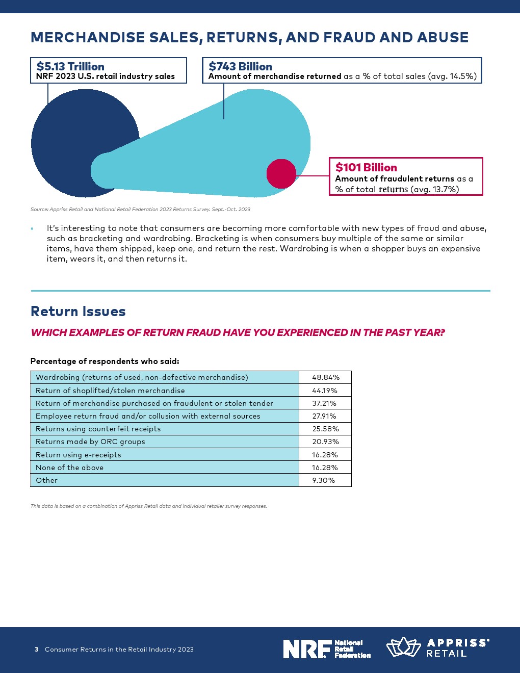 2023年,影响总退货的滥用和欺诈比例为13.7%。