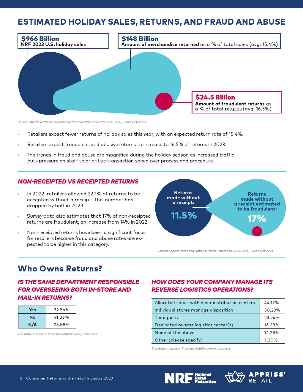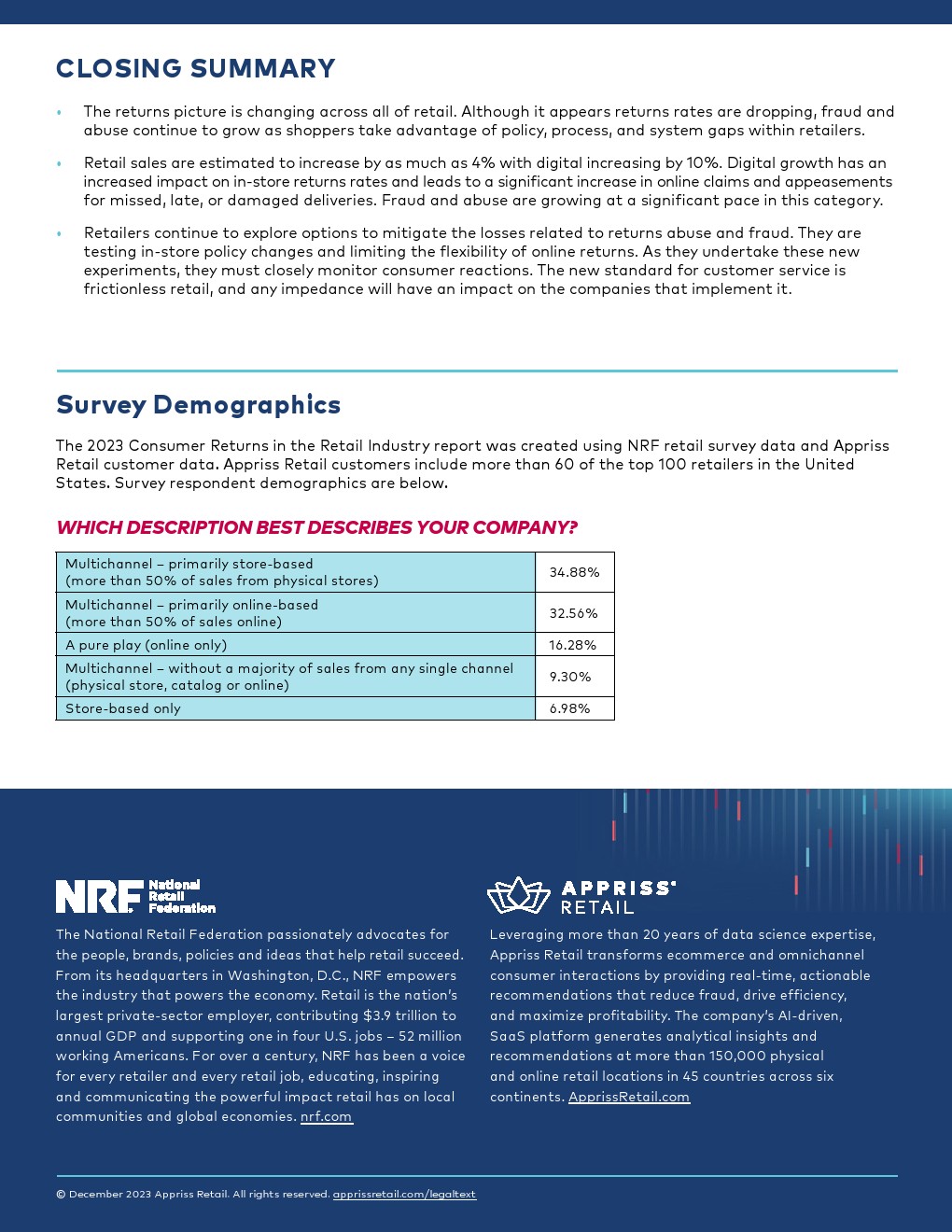 2023年消费者退货的方法与过去几年略有不同。全美零售商联合会(NRF)与ApprissRetail合作,将其客户退货数据与NRF的调查结果配对。Appriss Retail的客户包括美国百强零售商中的60家。
