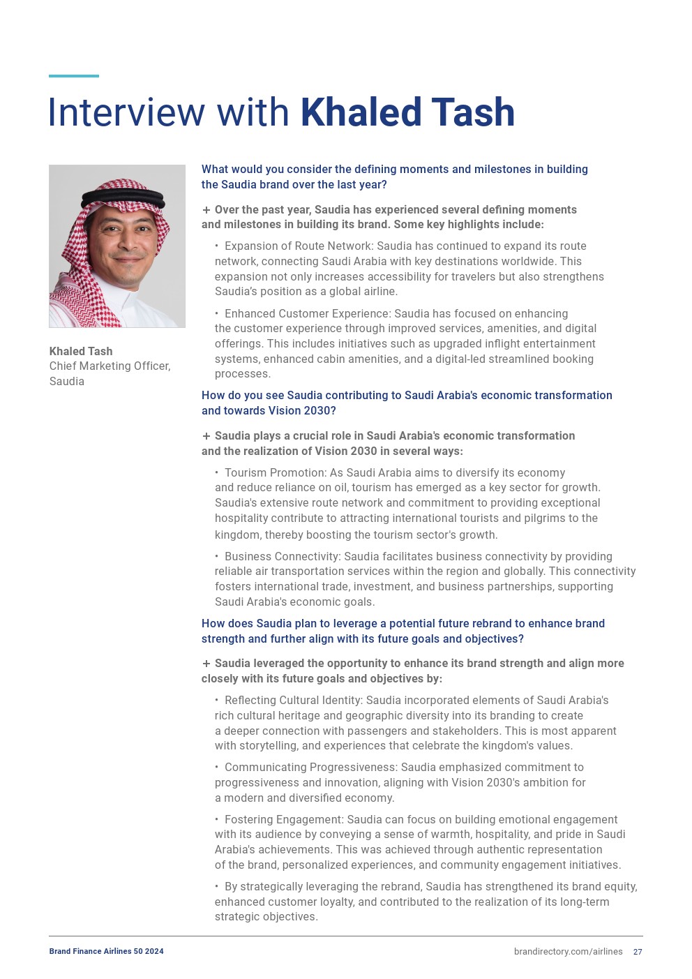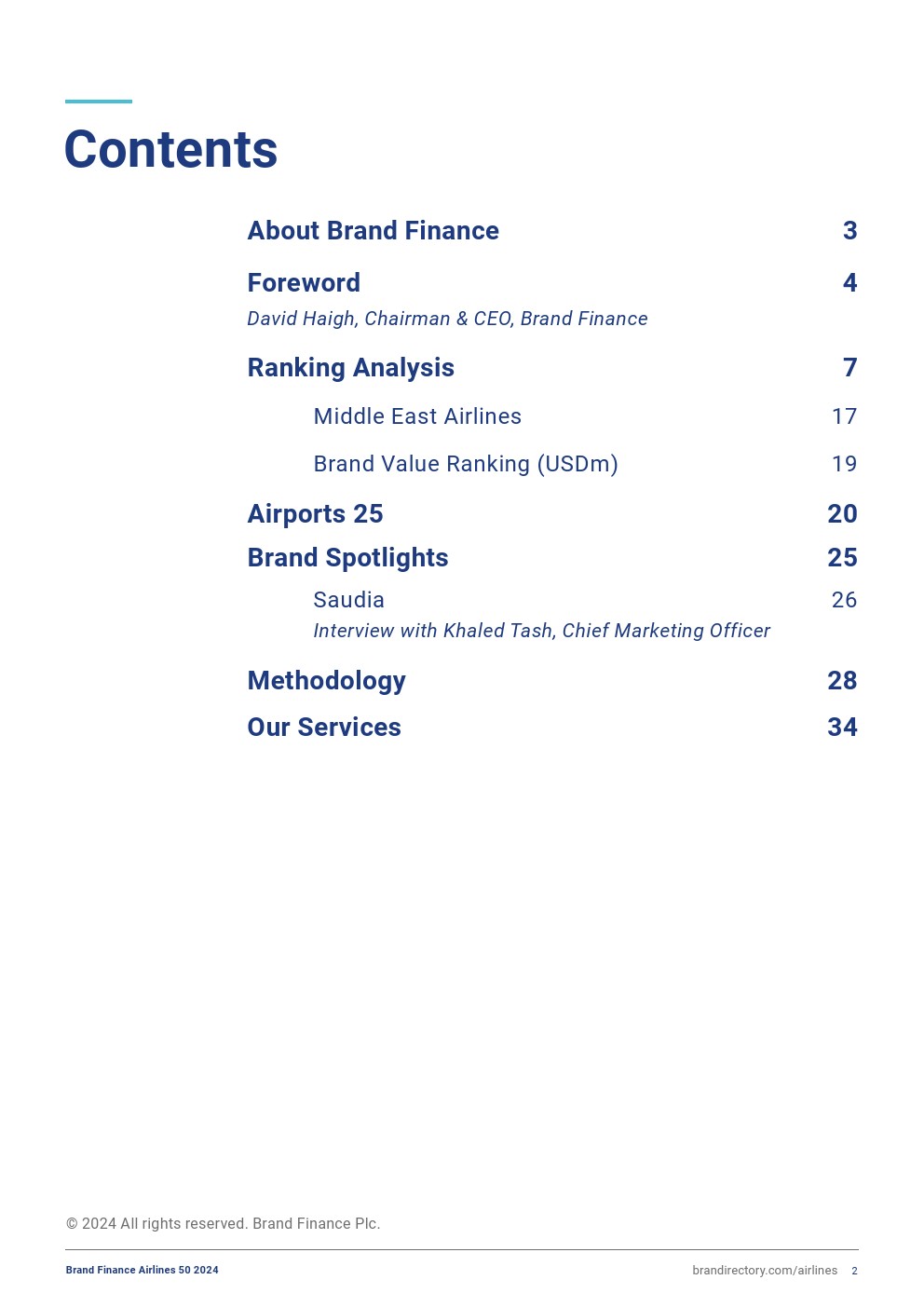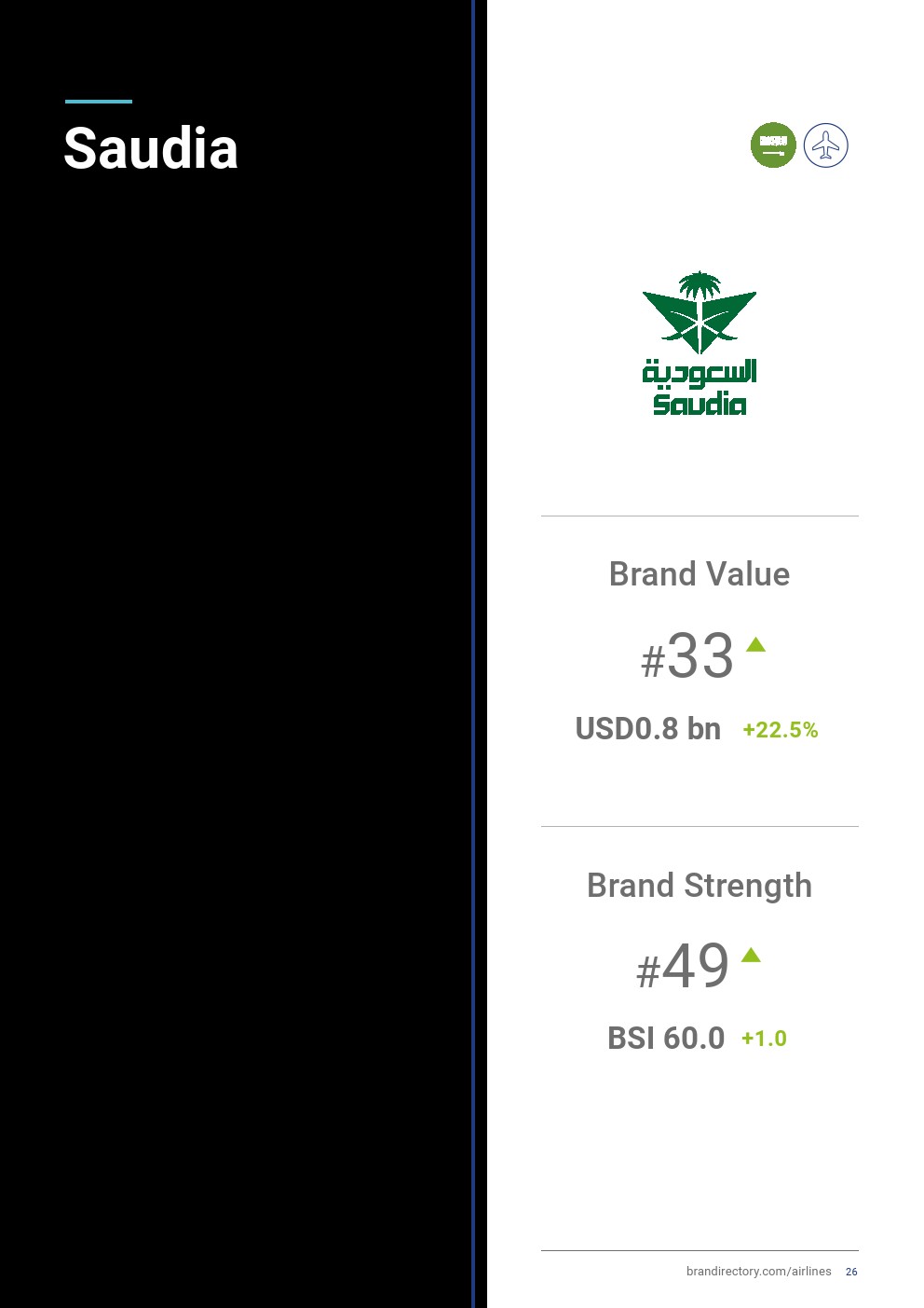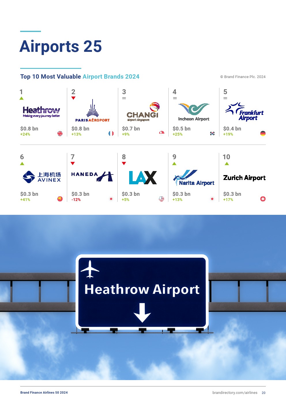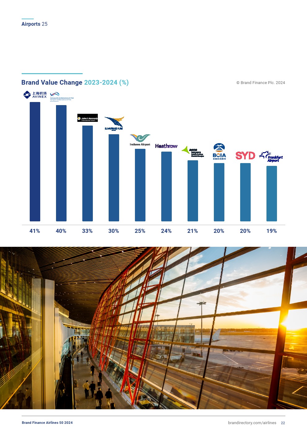 全球最强的航空公司品牌是全日空(品牌价值下降15%,达到20亿美元),其次是靛蓝(品牌价值增长26%,达到11亿美元)和阿联酋航空。此前,大韩航空(品牌价值上升11%,达到19亿美元)和亚航(品牌价值下降13%,达到12亿美元)在2023年的品牌实力排名中分别位居第二和第三位。
