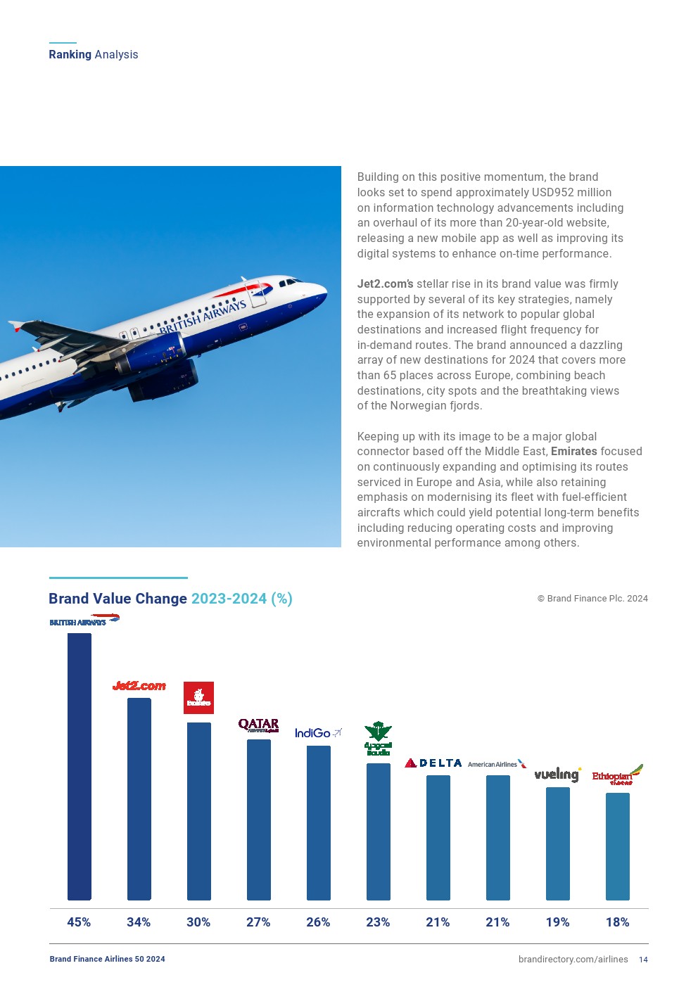 英国航空(British Airways)、Jet2.com和阿联酋航空(Emirates)跃升为品牌价值表现最好的公司