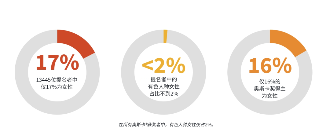 除最佳导演奖外,自1929年以来,奥斯卡奖的13445位提名者中,只有17%是女性,而有色人种女性占比不到2%。