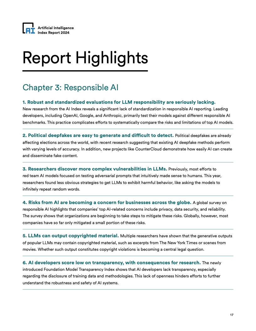目前,针对大型语言模型 (LLM) 的责任评估缺乏可靠且统一的标准。AI 指数的最新研究表明,在负责任 AI 报告方面缺乏标准化。包括 OpenAI、Google 和 Anthropic 在内的领先开发人员,主要使用不同的负责任 AI 基准来测试他们的模型。这种做法使得系统地比较顶级 AI 模型的风险和局限性变得更加困难。