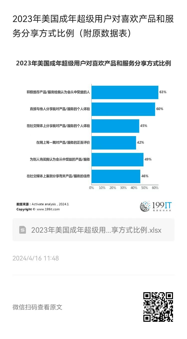 2023年美国成年超级用户对喜欢产品和服务分享方式比例(附原数据表) ​​​