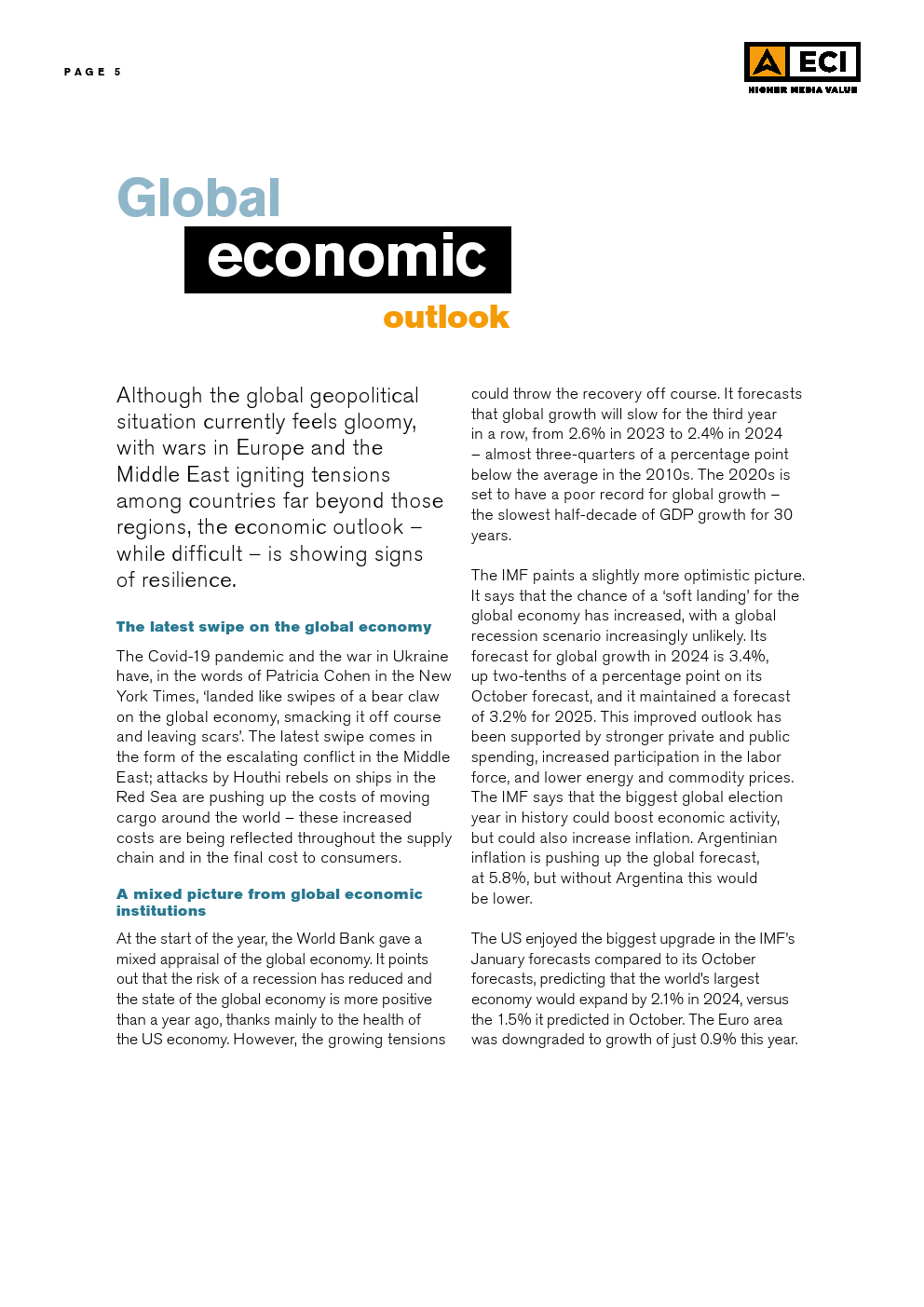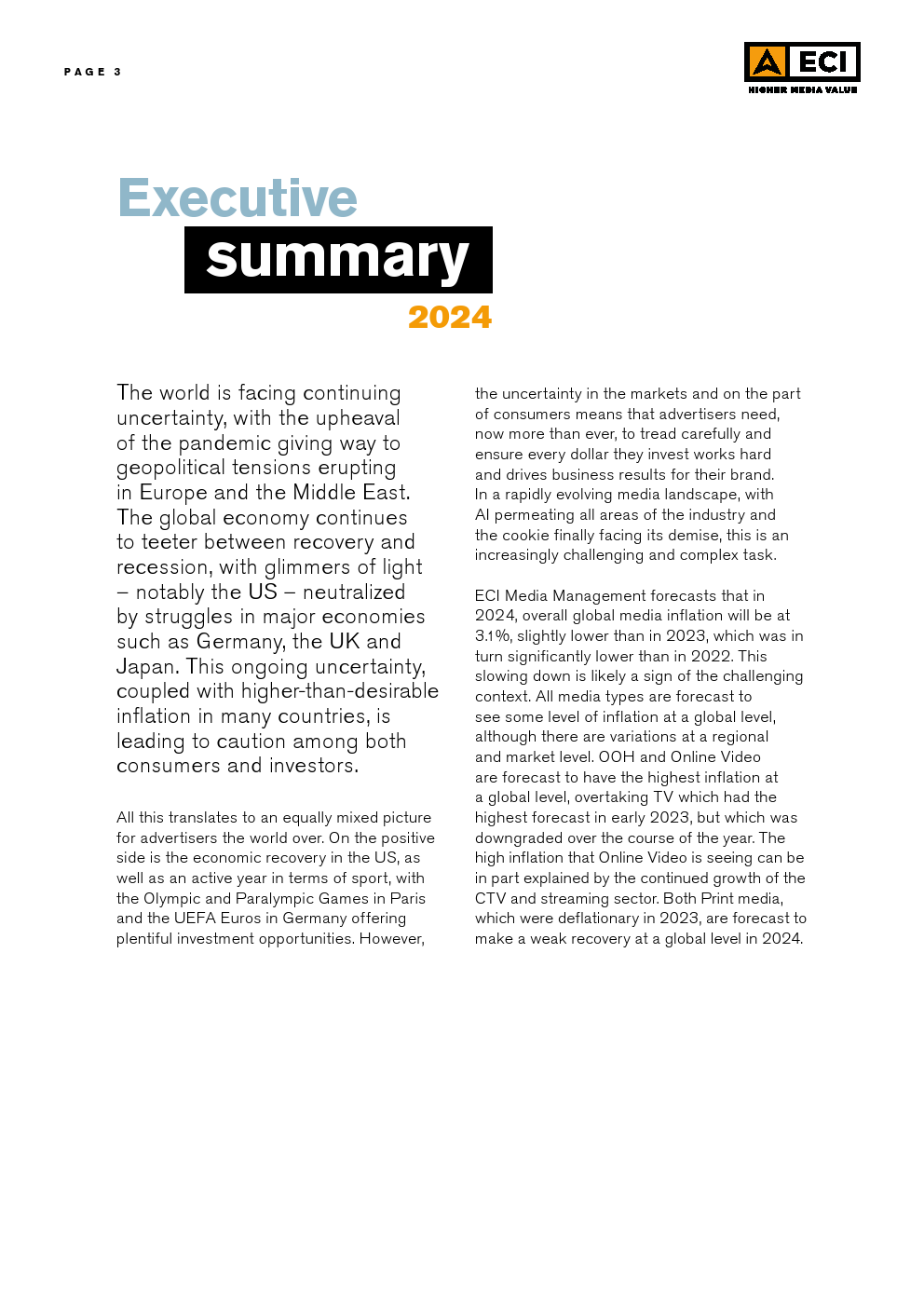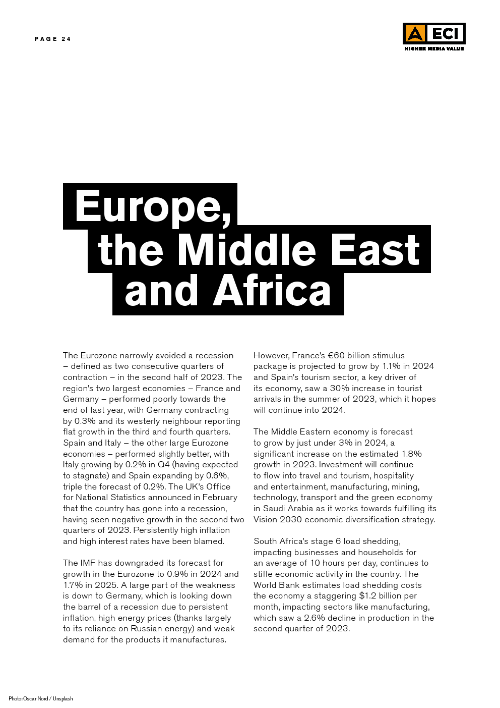 ECI发布了“2024年第一季度媒体通胀报告”。世界面临持续的不确定性,大流行的动荡让位于欧洲和中东爆发的地缘政治紧张局势。全球经济继续在复苏和衰退之间摇摆,一线曙光被德国、英国和日本等主要经济体的挣扎所抵消。这种持续的不确定性,加上许多国家的通胀高于预期,导致消费者和投资者都保持谨慎。
