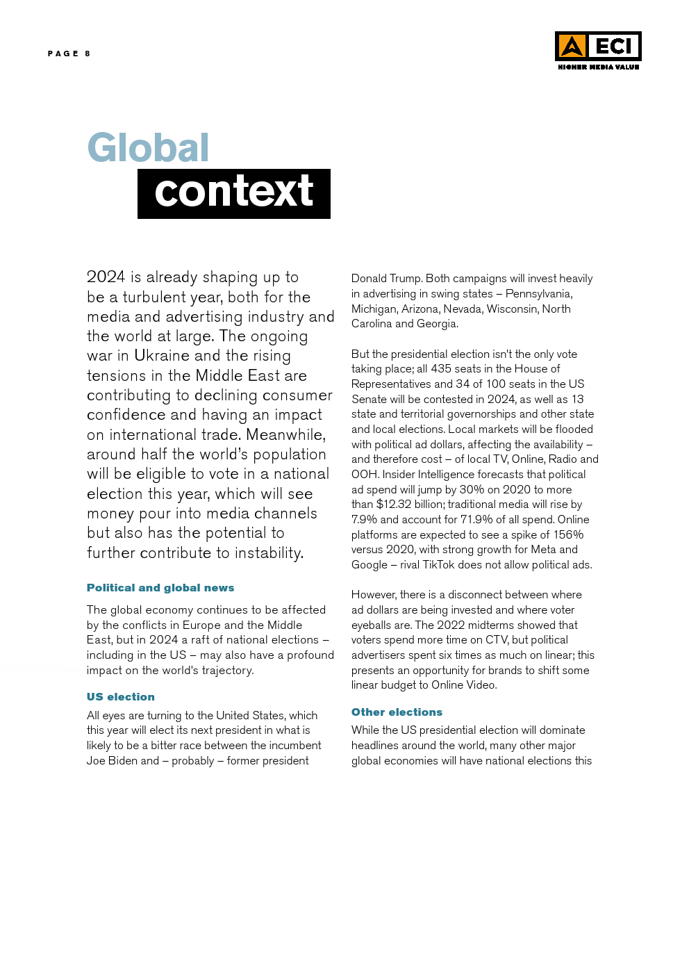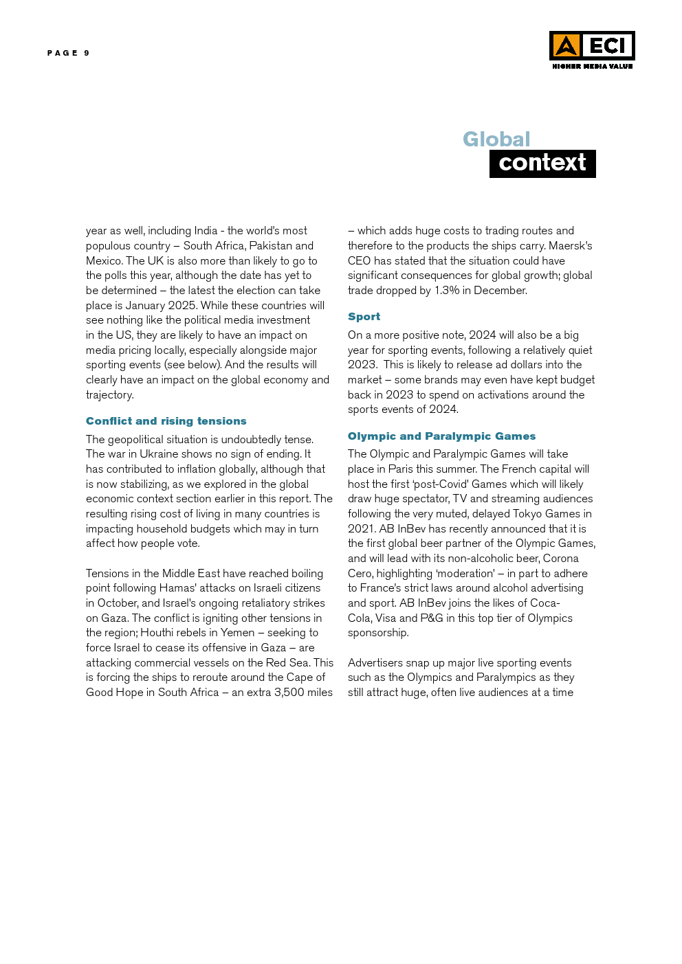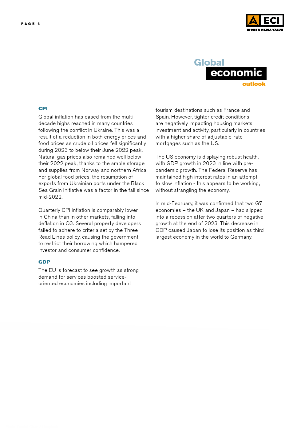 ECI发布了“2024年第一季度媒体通胀报告”。世界面临持续的不确定性,大流行的动荡让位于欧洲和中东爆发的地缘政治紧张局势。全球经济继续在复苏和衰退之间摇摆,一线曙光被德国、英国和日本等主要经济体的挣扎所抵消。这种持续的不确定性,加上许多国家的通胀高于预期,导致消费者和投资者都保持谨慎。