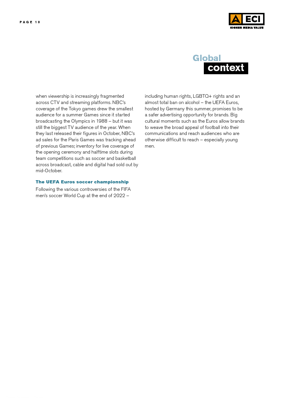 所有这些对全世界的广告主来说都是一幅同样复杂的画面。积极的一面是美国经济复苏,以及体育活动活跃的一年,巴黎奥运会和残奥会以及德国欧足联欧洲杯提供了大量的投资机会。